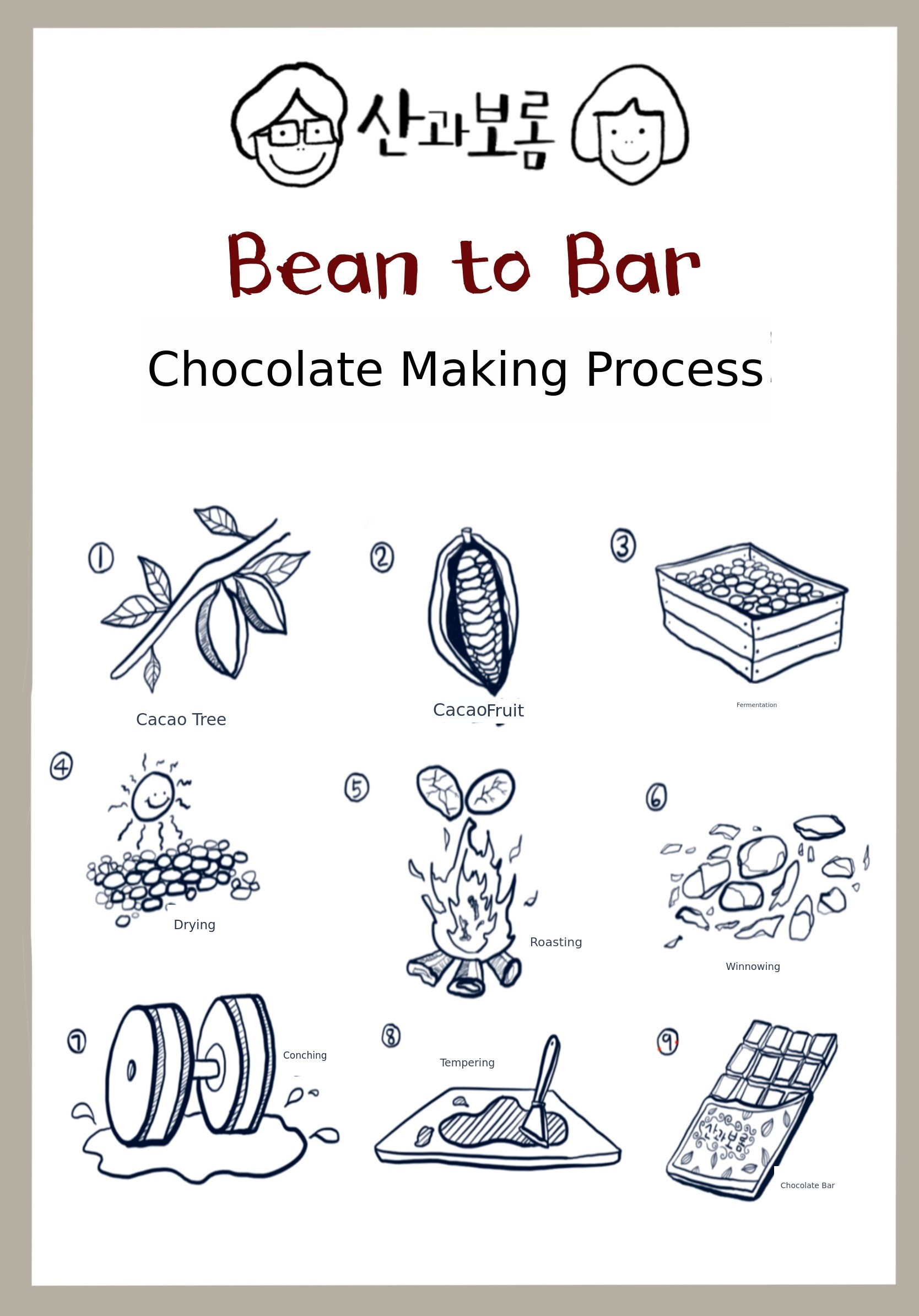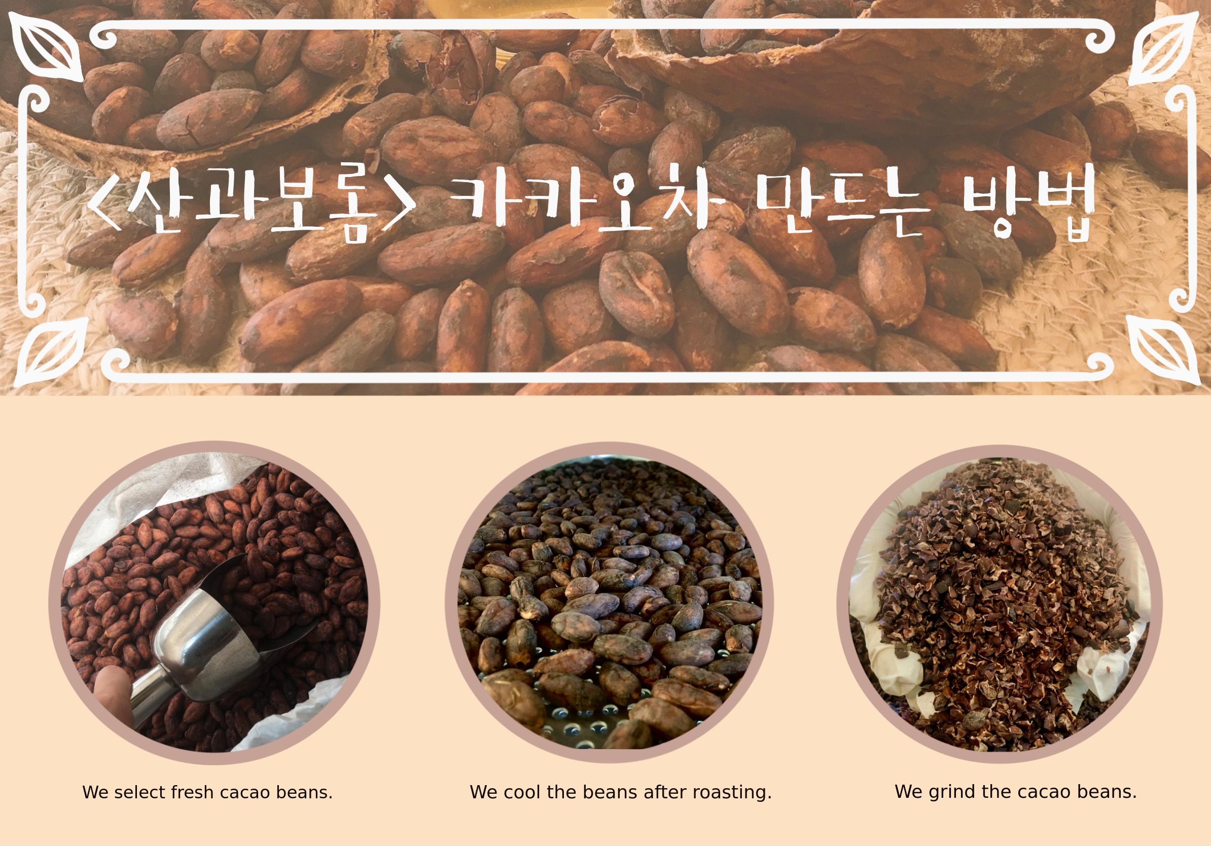 Then I learned about cacao, the raw ingredient of chocolate, and Sankwaborom started making it at home little by little. I discovered for the first time that cacao, like coffee, has a variety of flavors and its size and color differ depending on the origin. The more we ate, the more fascinated we became with cacao, and we started to study it more deeply.