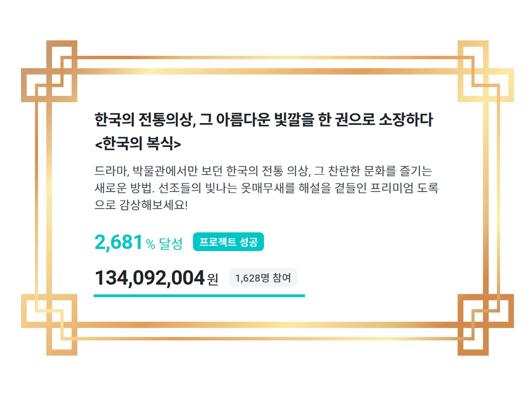 우리나라의 아름다운 빛깔은 아직도 더 많은 이들에게 알려져야 한다고 생각합니다. 프로젝트가 성공하면 저희부터 한국적 미에 더 많은 관심을 갖고, 이에 관한 여러가지 아이디어를 구체화시키기 위한 노력을 진행하겠습니다. 작은 날갯짓 하나가 큰 바람이 되듯, 많은 사람들에게 한국적 아름다움이 전해지는 계기가 되길 간절히 기원합니다.