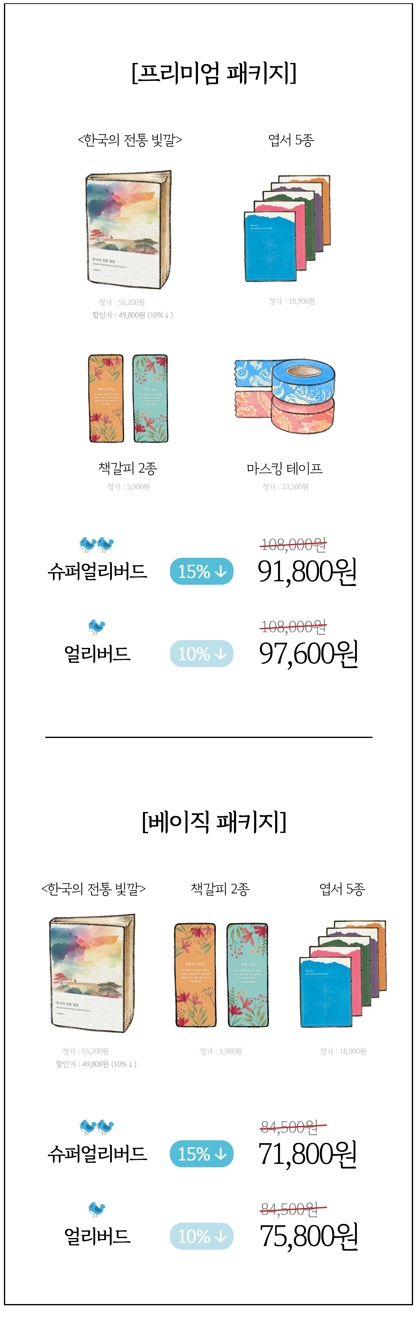 한국의 아름다운 전통 빛깔들이 한가득 들어있는 풀컬러 도록, 그리고 다양한 보너스 리워드.