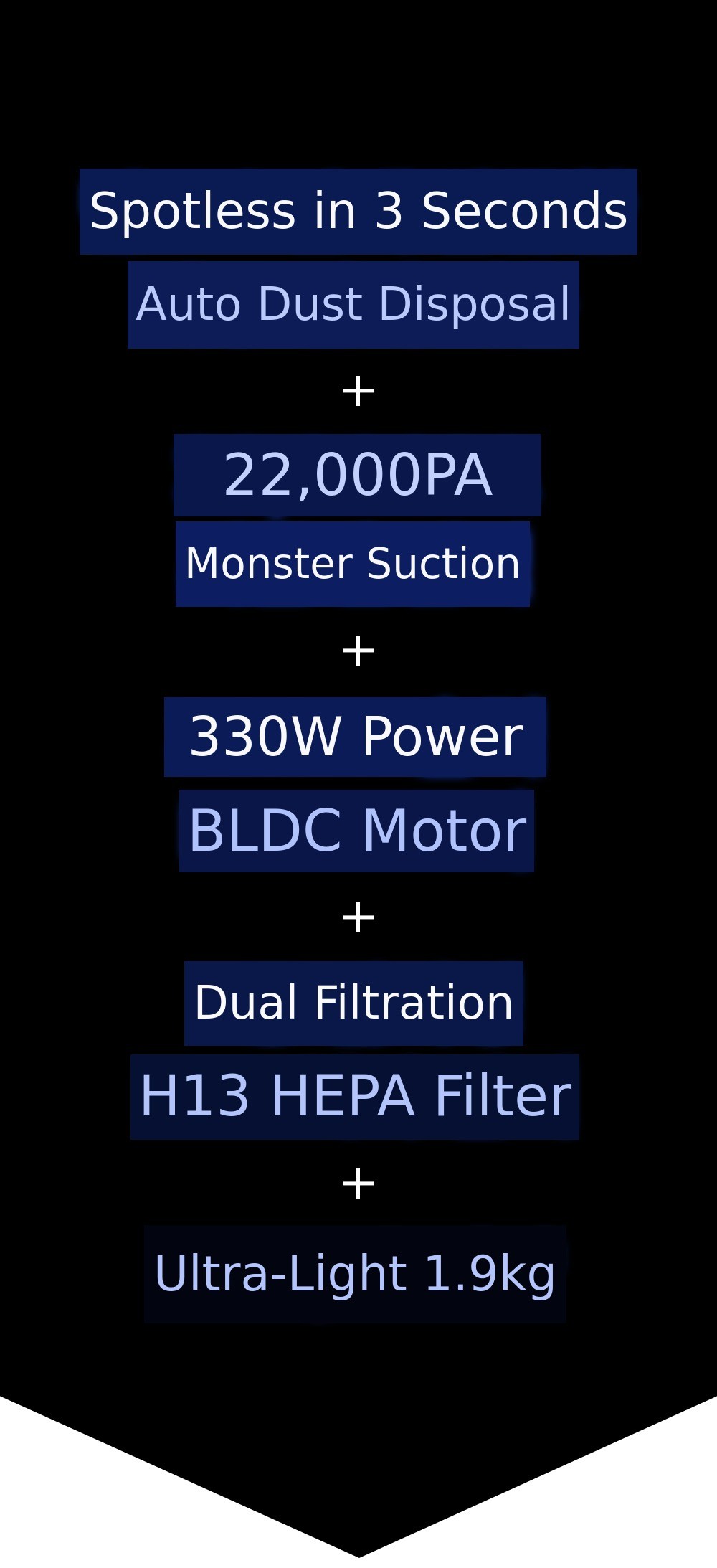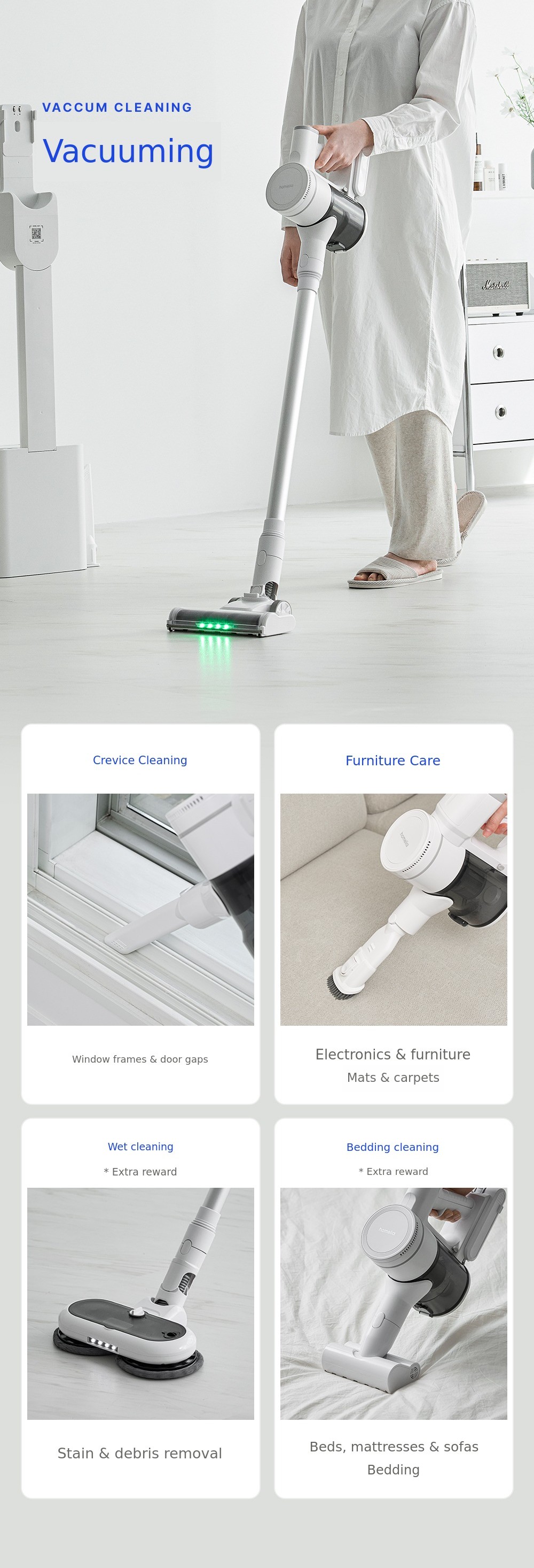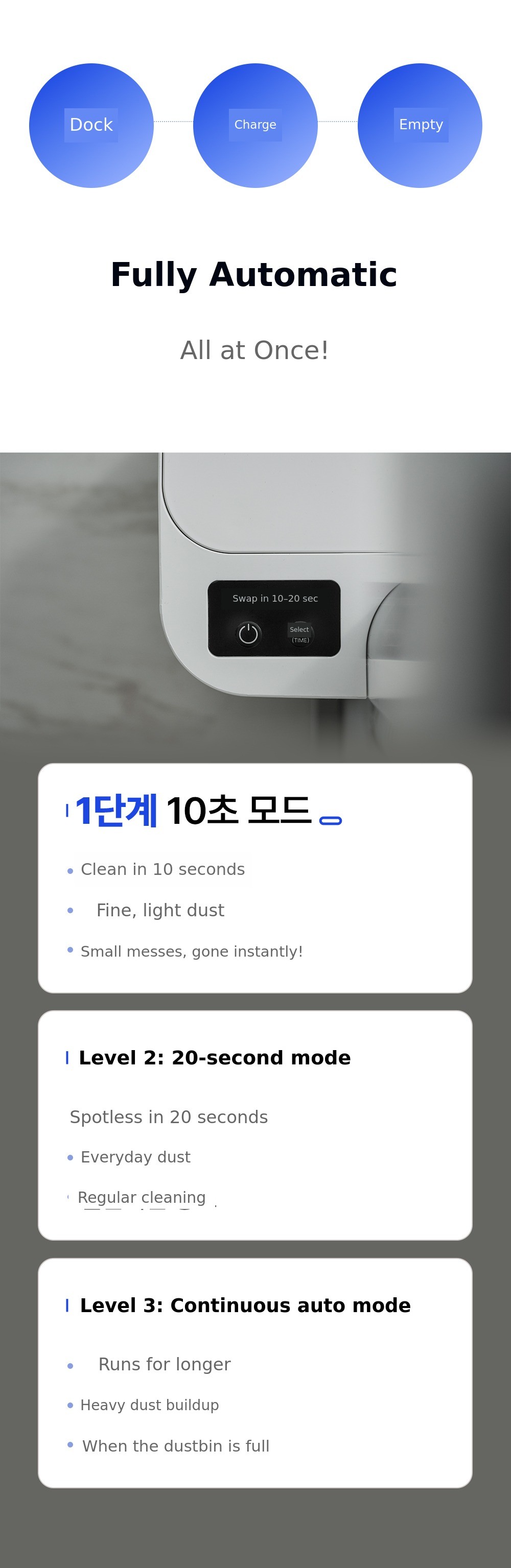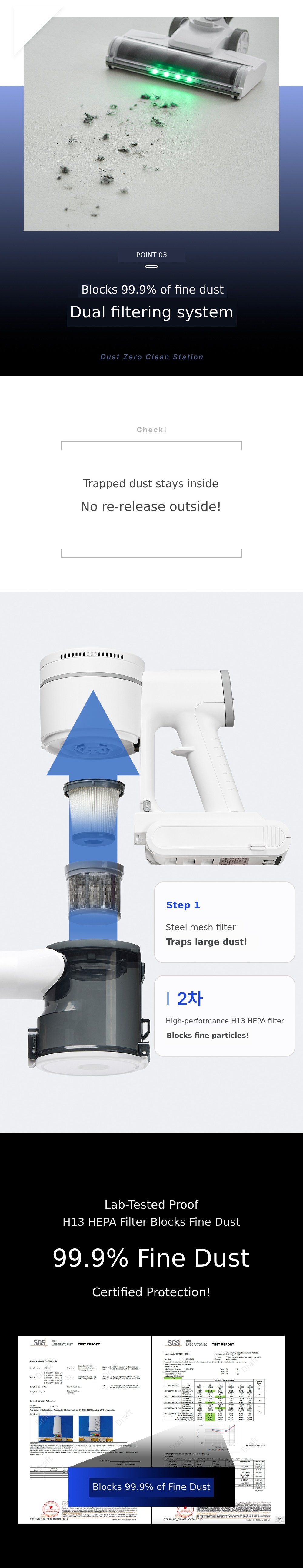 We have made it possible for every household to enjoy a more convenient and hygienic cleaning experience by offering the automatic dust emptying function and powerful performance, previously available only from high-end brands, at a reasonable price.