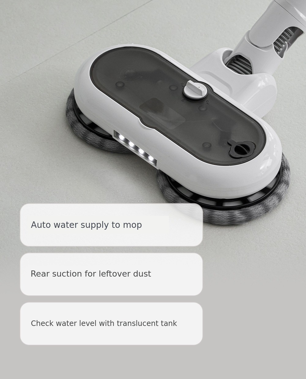 Just like cleaning by hand, the dual spin mop brush quickly and thoroughly removes dirt from the floor.