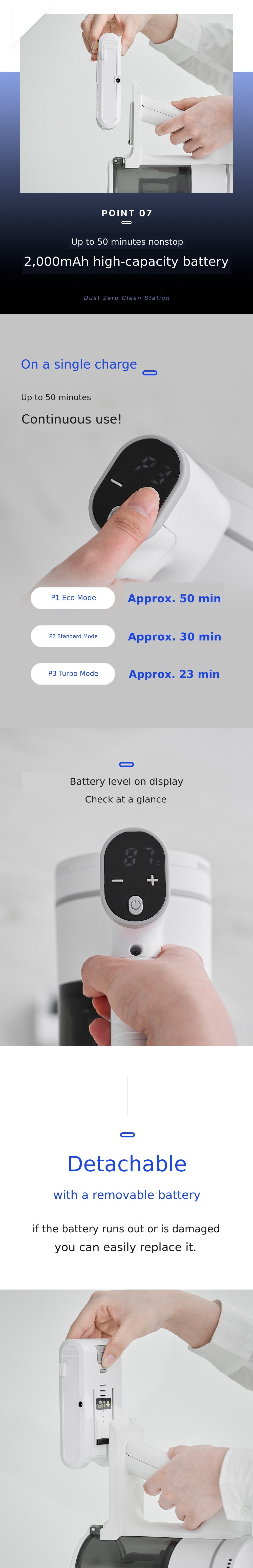 ㆍWhen using the 3-stage mode, the power is designed to decrease by about 20% after about 1 minute from the start of cleaning to ensure stable battery usage.