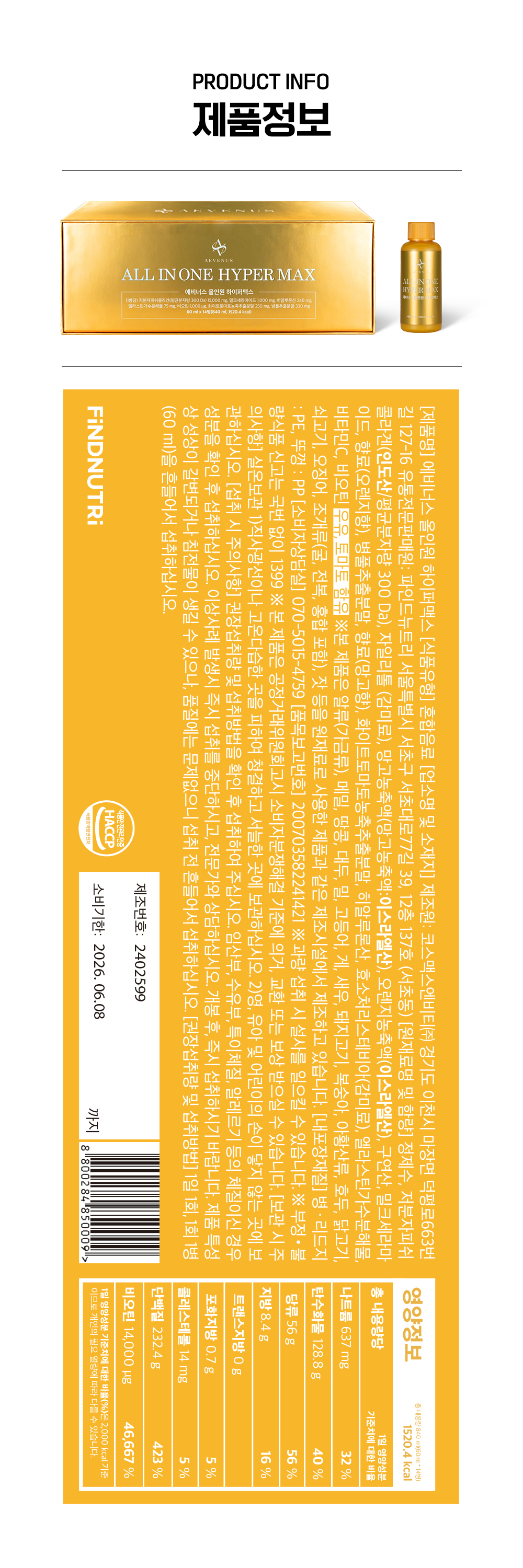 - 올인원 하이퍼맥스 제품은 60ml 고함량 제품으로 집중케어를 원하시는 분은 한 번에 섭취하는 것을 권장드리나, 소분하여 두 번에 나눠 섭취하셔도 괜찮습니다.