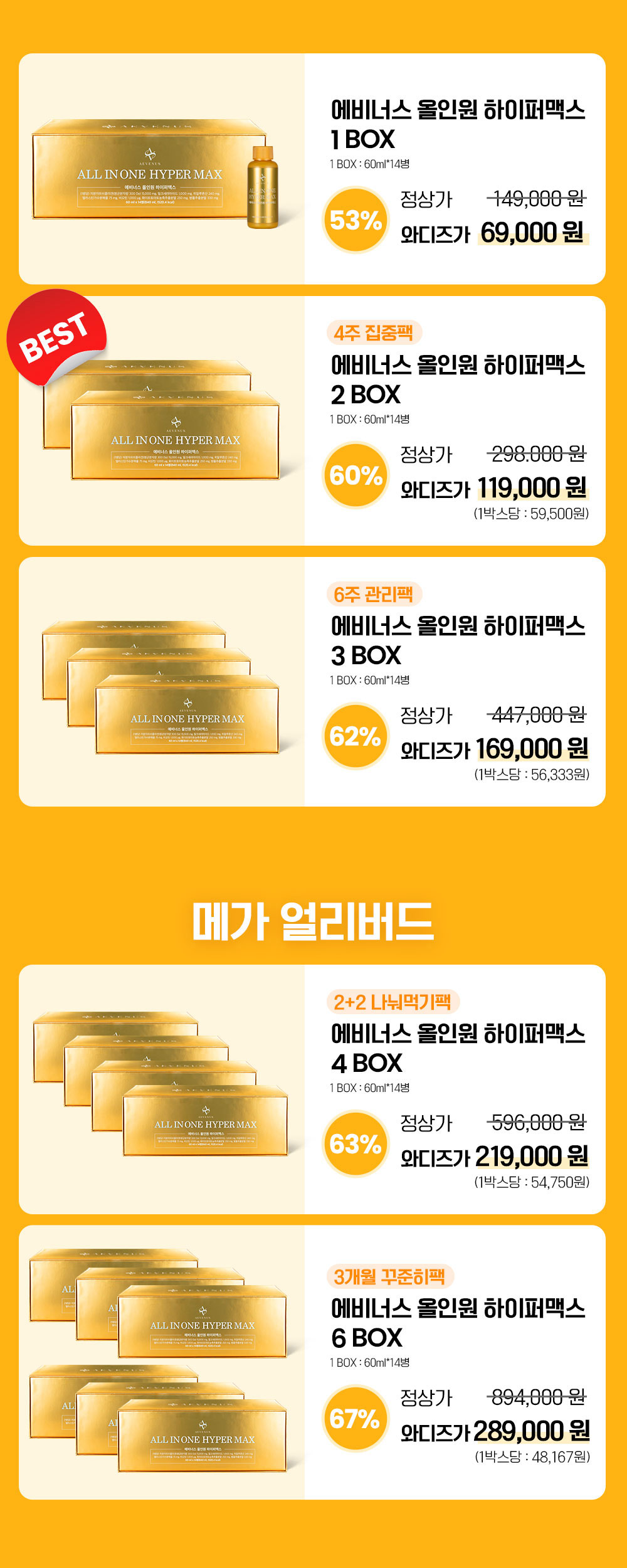 '에비너스 올인원 하이퍼맥스'는 이렇게 보내드려요.