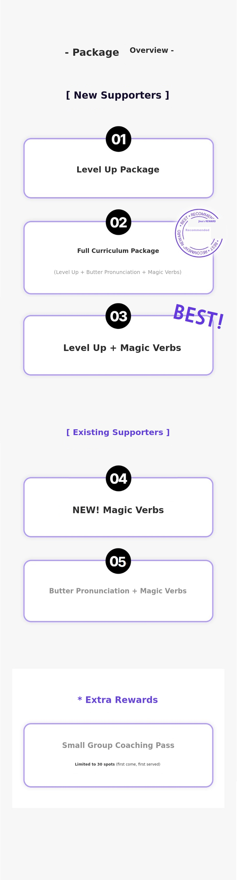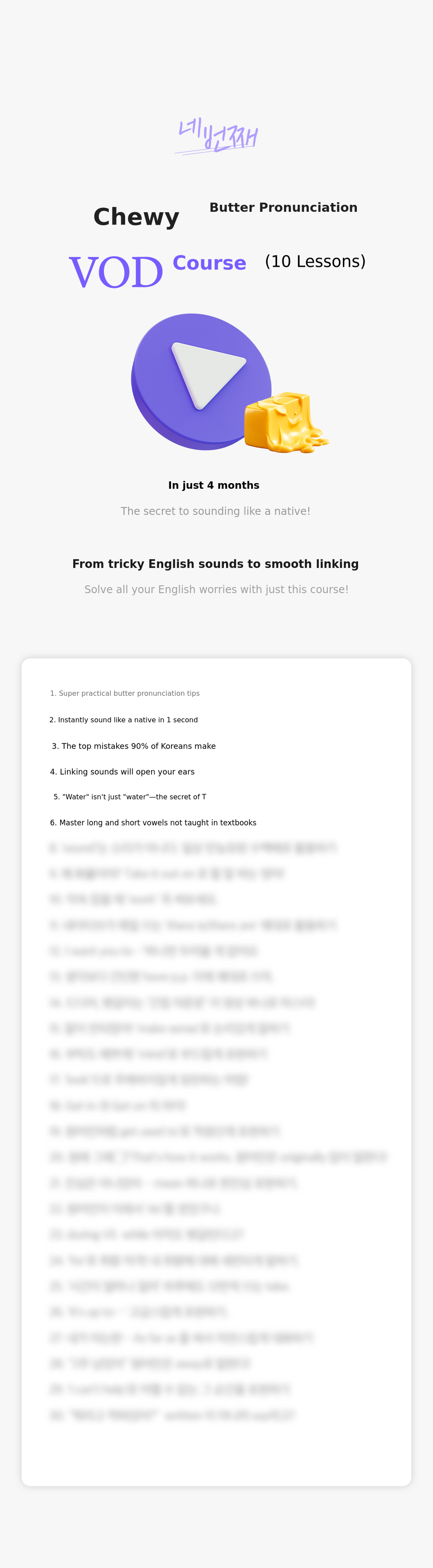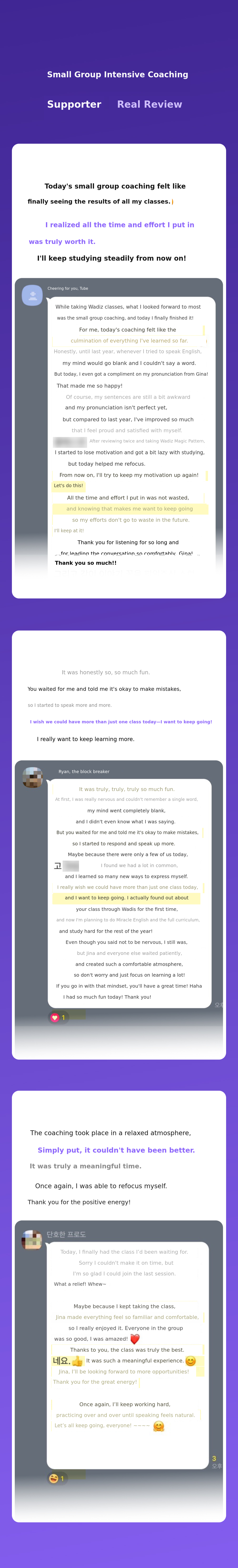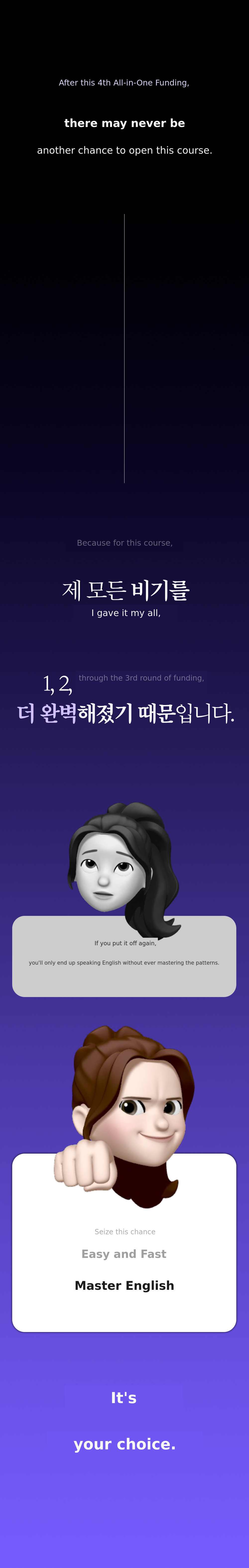 I chose Wadiz funding to continuously communicate with supporters and provide more complete and efficient services. The funds you support and provide will be used to create high-quality content that makes it easy and efficient to study and train English. My goal is to help you improve your English skills easily and enjoyably through the 30 Magic Patterns I created, drama pinpoint lectures, butter pronunciation lectures, magic phrasal verb lectures, and preposition lectures.