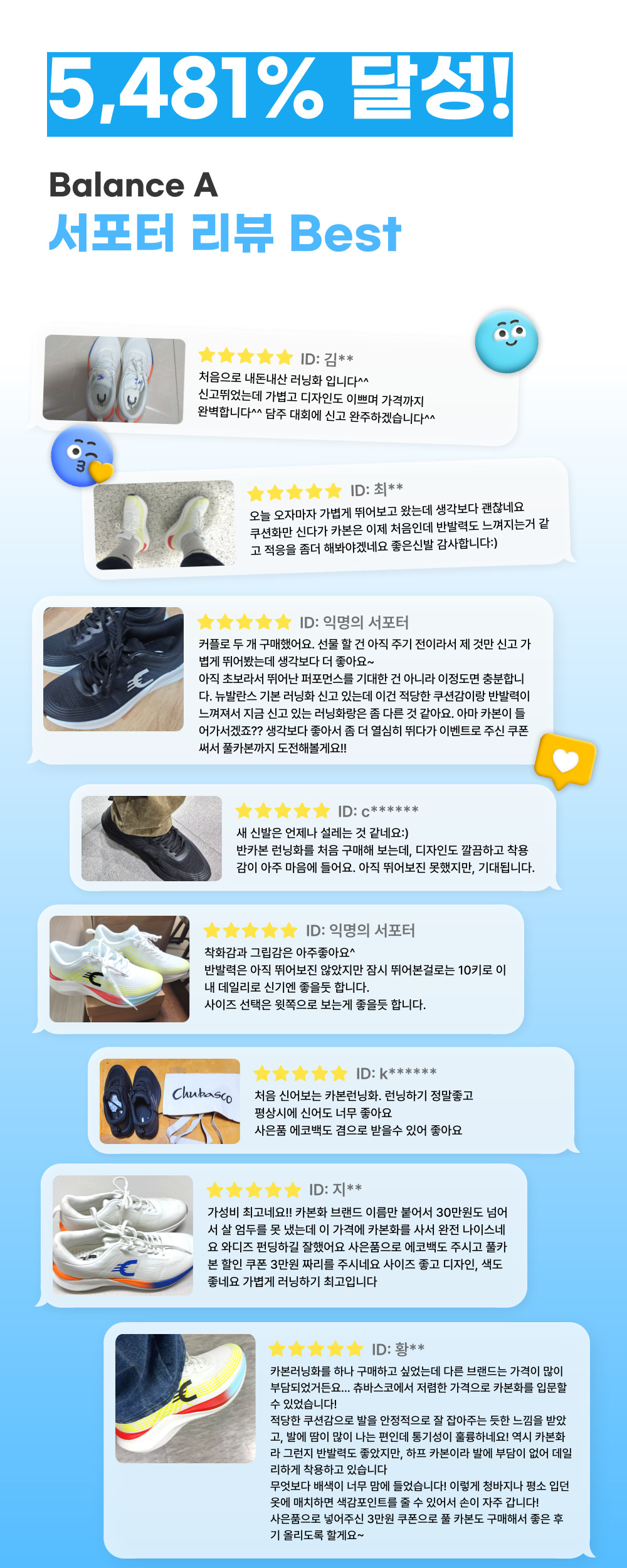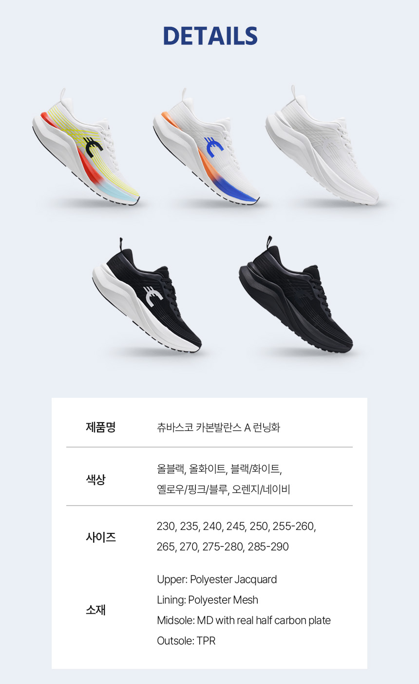 츄바스코에서 고객님들과 오랜 동안 함께 한 경험을 바탕으로 러닝화라는 새로운 카테고리를 시작하게 되어 기쁘게 생각하며 앞으로도 좋은 제품을 좋은 가격에 선보일 수 있도록 최선을 다하겠습니다.