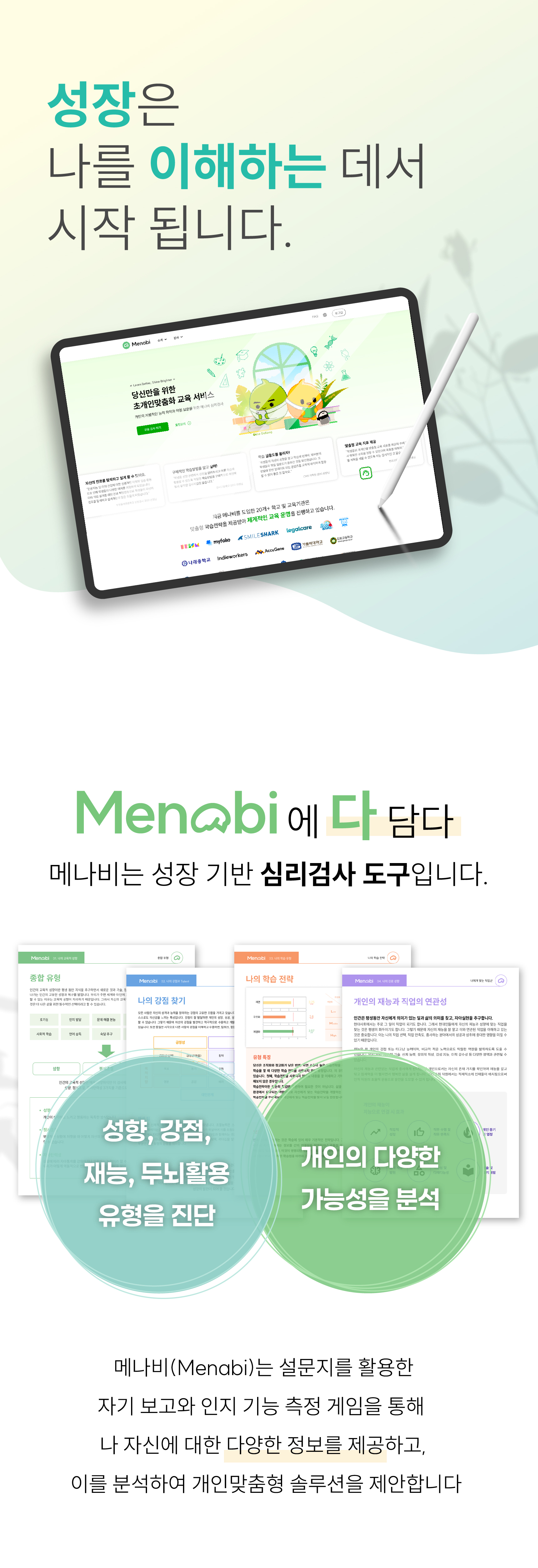 Menabi는 나 자신을 보다 더 잘, 올바르게 이해할 수 있도록 도움을 줍니다.