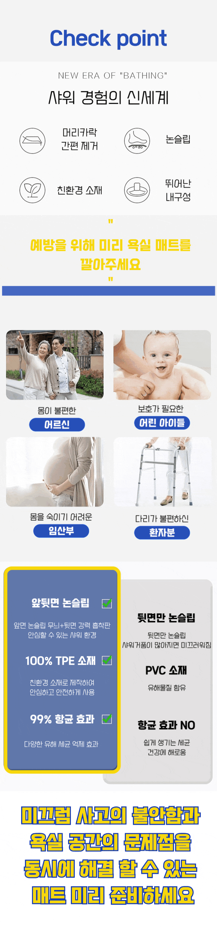 Prevent bathroom slips with our anti-slip mat—protect your family while enjoying a clean cozy space. A must-have for health and safety!