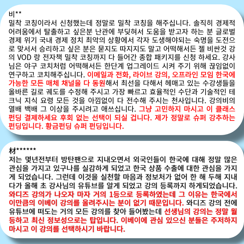 강의만 하고 셀링은 하지 않는 강의 팔이 강사와는 다릅니다.