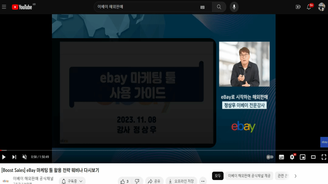 유튜브를 통해서 이베이 셀링 정보를 공유
