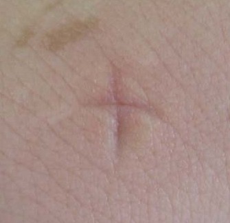 The side where the Kawakawa salve stick is applied and the side where it is not,
