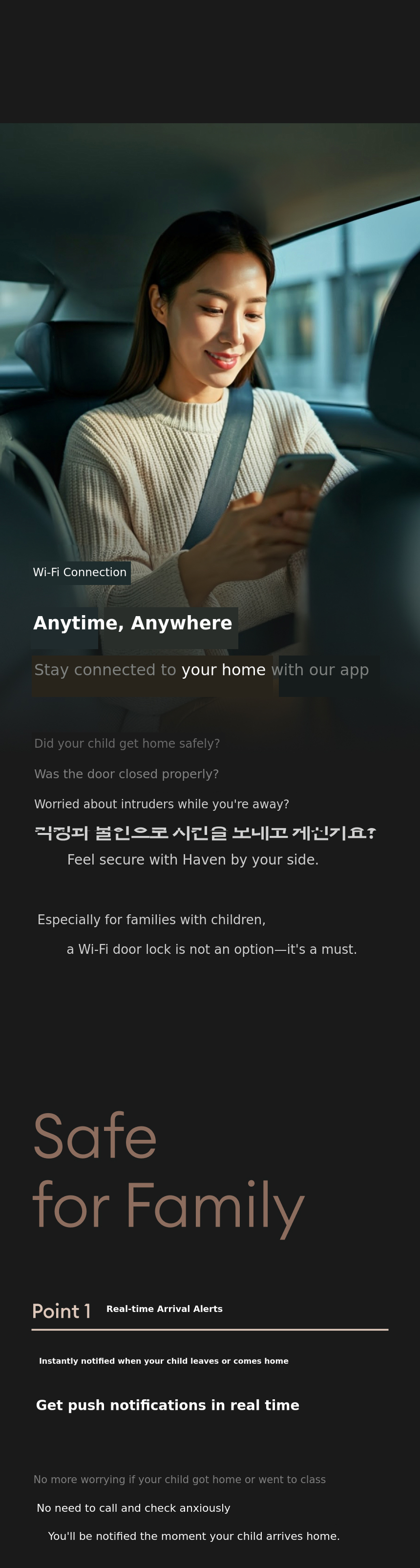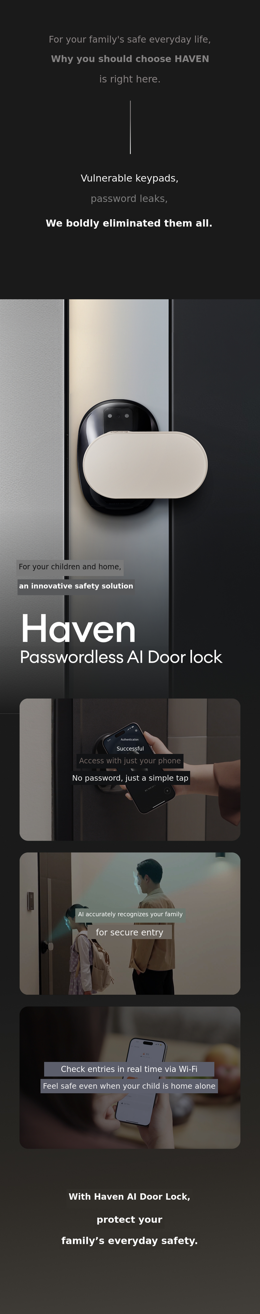 The security of our home should be safe, but it should also be convenient without a complicated process. We wanted to solve the inconveniences of existing door locks, such as tedious password entry, anxiety over lost keys, and fingerprint recognition errors. That's why, together with Zigbang Haven,we developed a smart door lock based on facial recognition.With a single scan, the door opens, and you can manage the door lock from anywhere via WiFi integration.