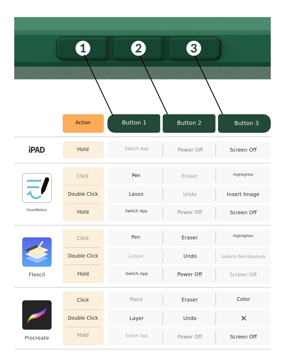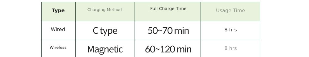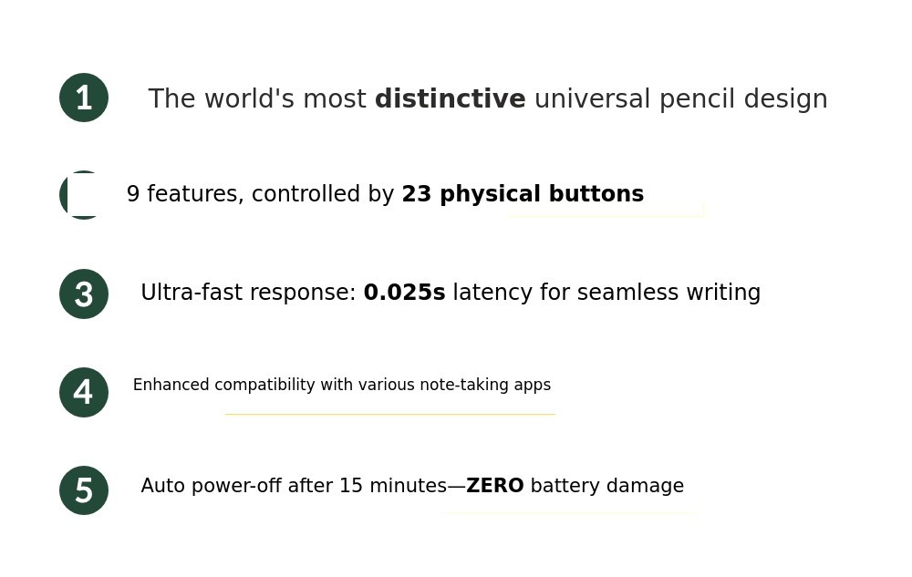 - OFF: A feature added to the Naelna Pencil; in the OFF state, there is no battery drain.