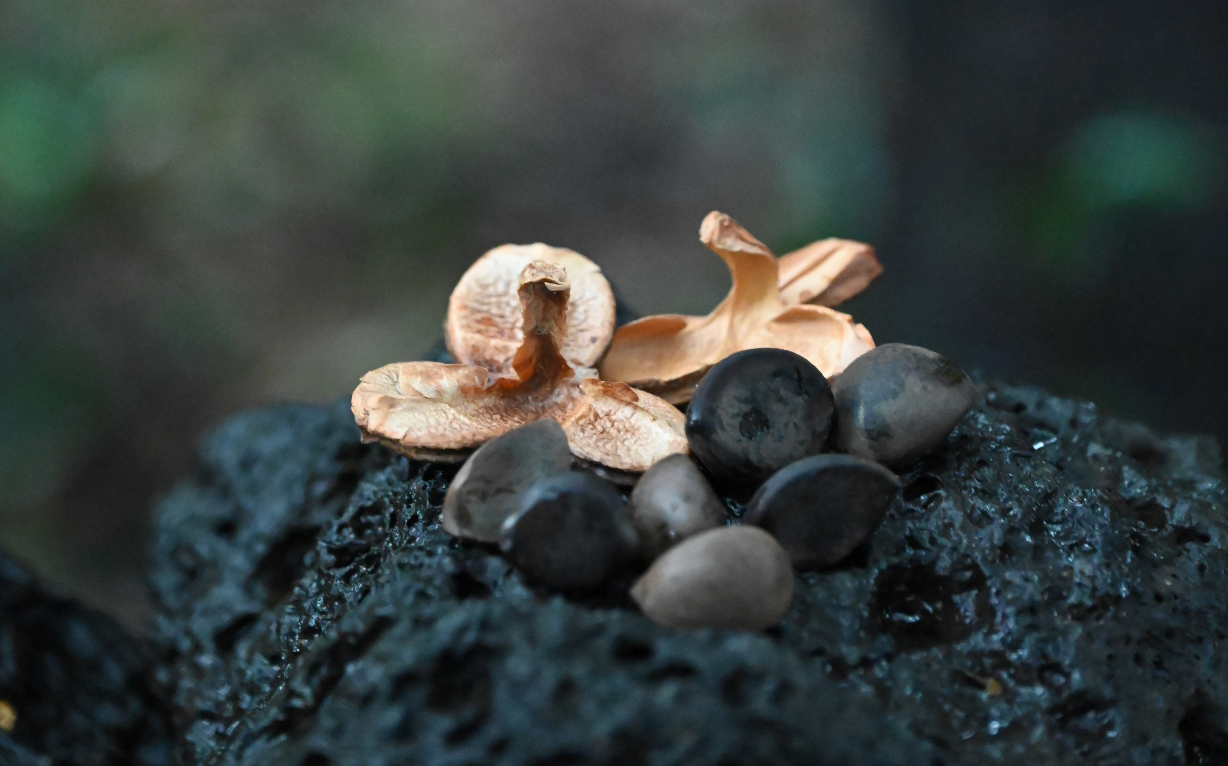 Ripened camellia fruits and seeds placed on basalt!