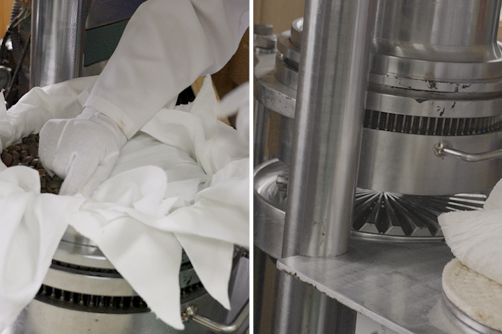 The director personally rubs camellia seeds on their fingernails to show us.