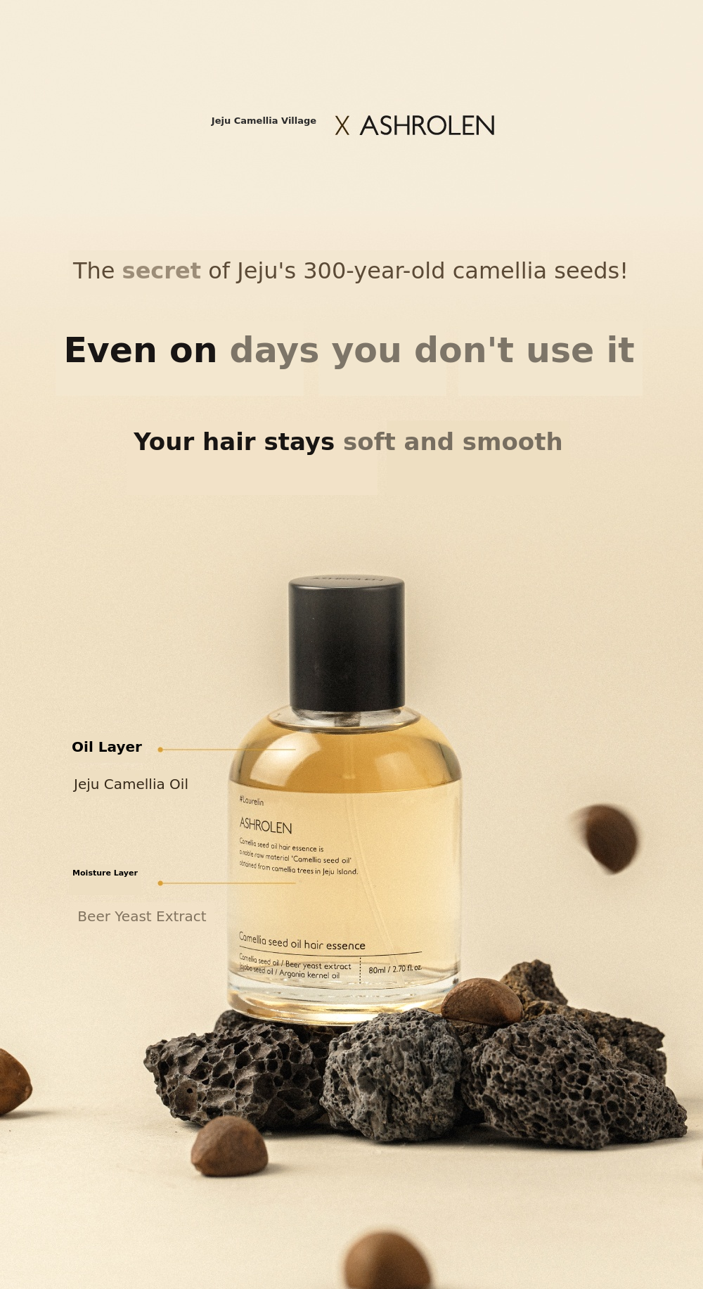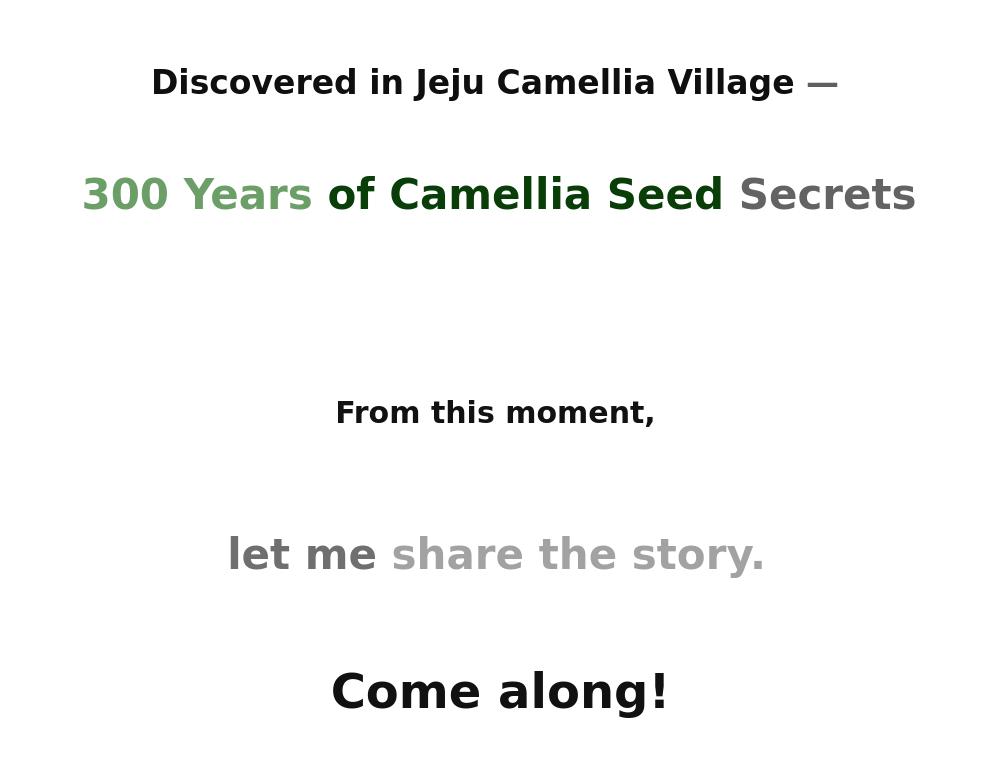 We wanted to share with our supporters as much as possible the story of 'Jeju Camellia Village' that we saw, heard, and felt while sourcing the ingredients. There were limitations on platforms that could deliver such detailed stories. We wanted to share the process of visiting the village to create a hair essence that did not exist on the market, and to introduce the '300-year-old camellia tree colony' and the precious ingredient 'camellia,' which have been carefully preserved by ancestors in Camellia Village since 1706.