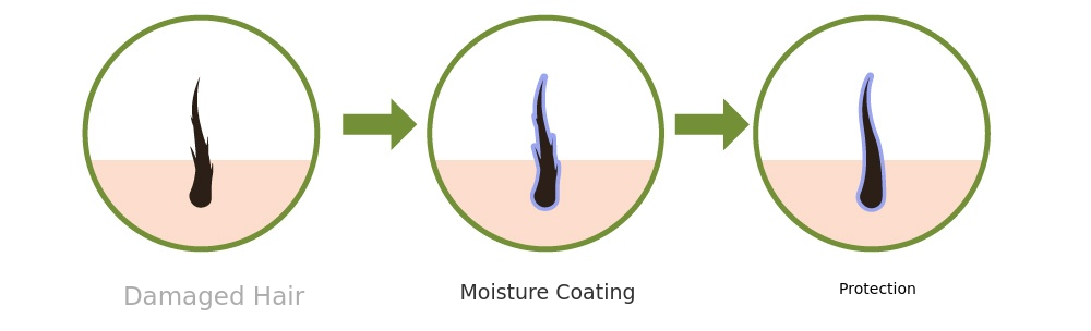 'Non-evaporating ingredient characteristic' Thanks to this, it is very effective in maintaining hair moisture and shine!