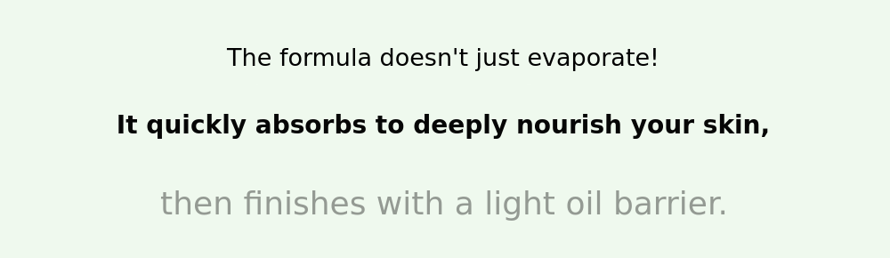 Because the oil is sprayed evenly, on certain partsIt does not clump, And the light, refreshing feeling lasts all day!