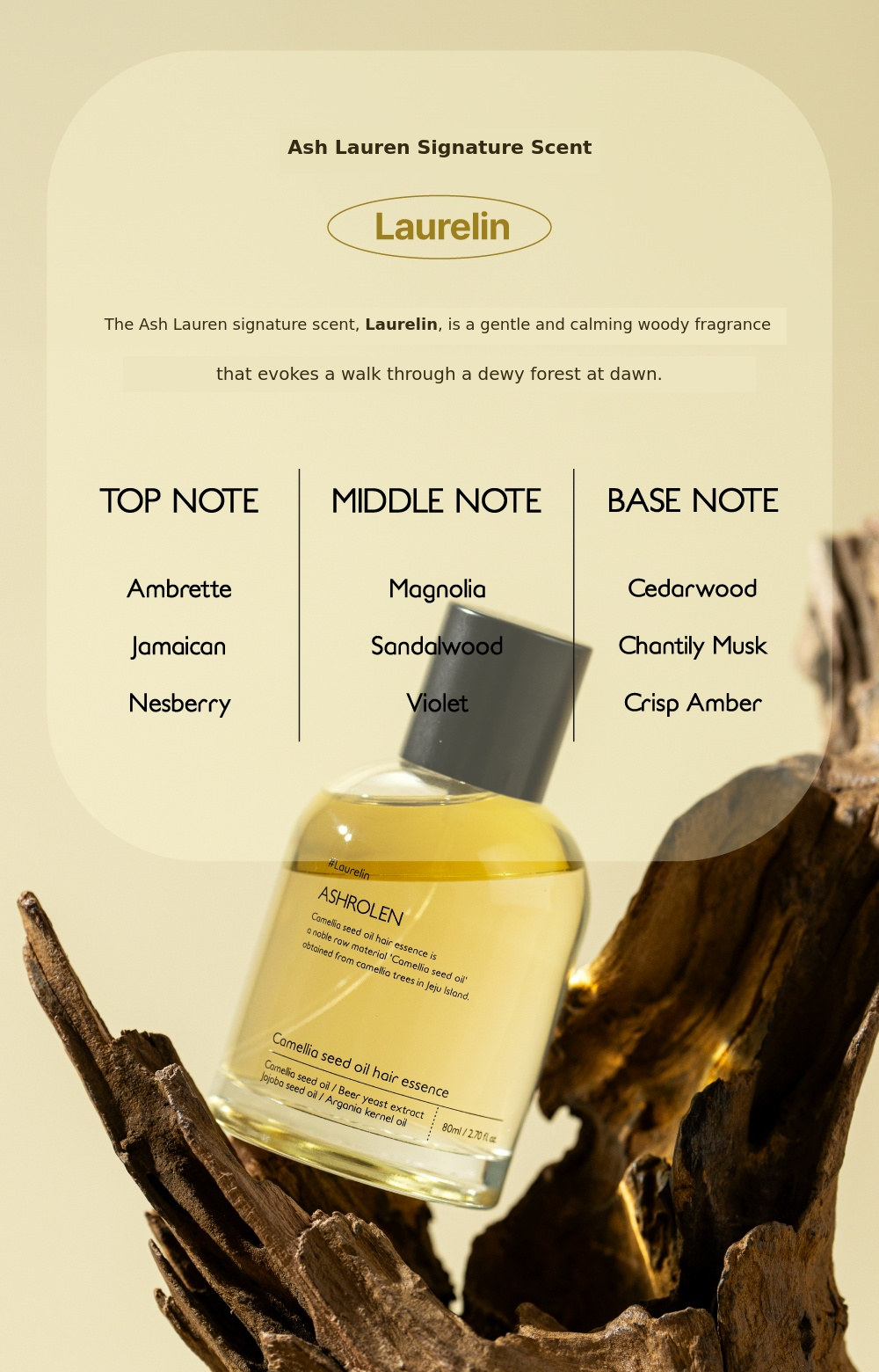 Laurelin, which can be called Ashrolen's signature scent,is a calm woody fragrance reminiscent of a walk in the forest.