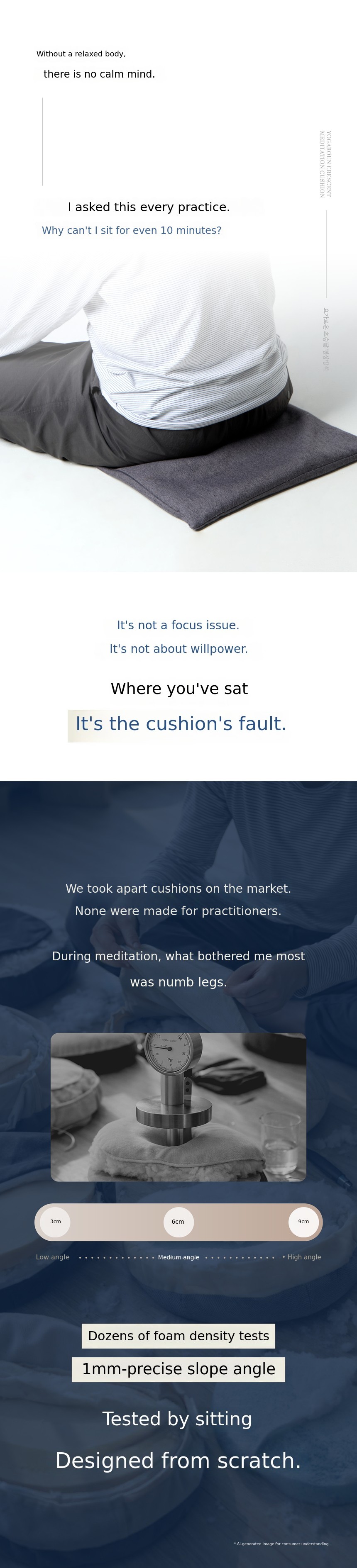 This product was created to solve the discomfort that anyone practicing meditation and yoga experiences at least once. That is why the reactions of those who would actually use it were most important. Rather than large distribution channels, I thought crowdfunding, where I could meet interested supporters first and directly receive feedback, was the best way for this product.