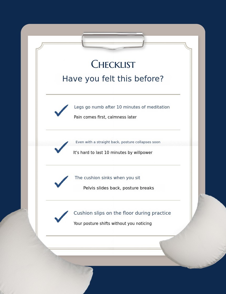 While practicing, I always experienced the same discomfort. Every time I sat for meditation, my legs would go numb, and when I focused on my posture, I couldn't concentrate on meditation itself. I tried many different cushions in search of a good one, but none were satisfying. In the end, I decided to make one myself.