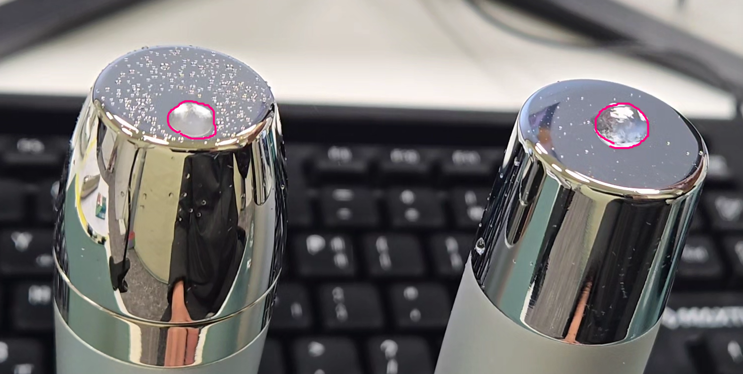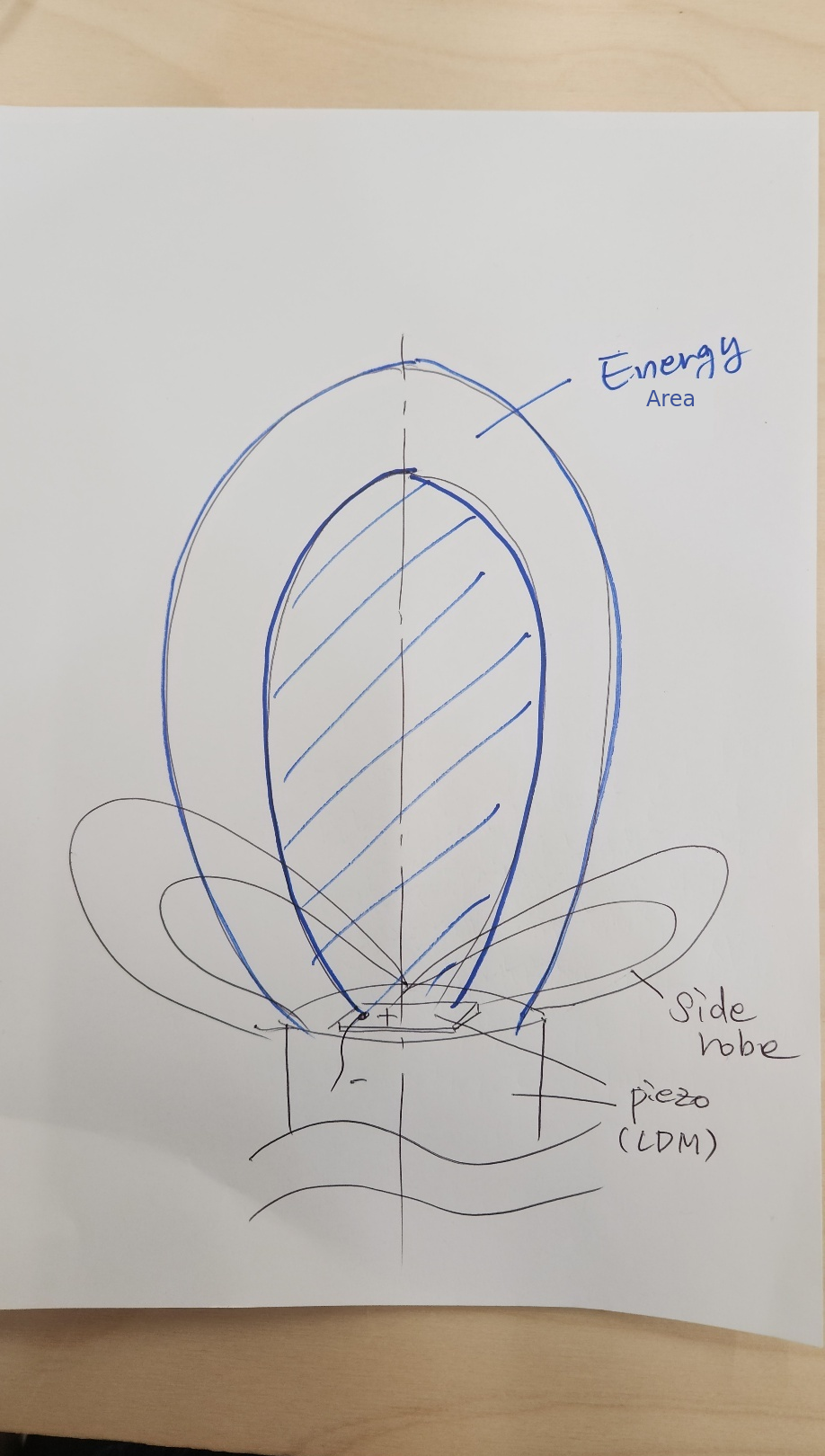 When droplets vaporize like smoke, it means the output of the ultrasound is unstable and fluctuating. Ideally, in the case of droplet ultrasound, when the correct frequency is applied, an ultrasonic resonator is attached to the head section where the ultrasound is generated. At this time, the energy of the ultrasound has directivity,in addition to this energy, a phenomenon called sidelobe (also known as the earlobe effect) physically occurs, as well.