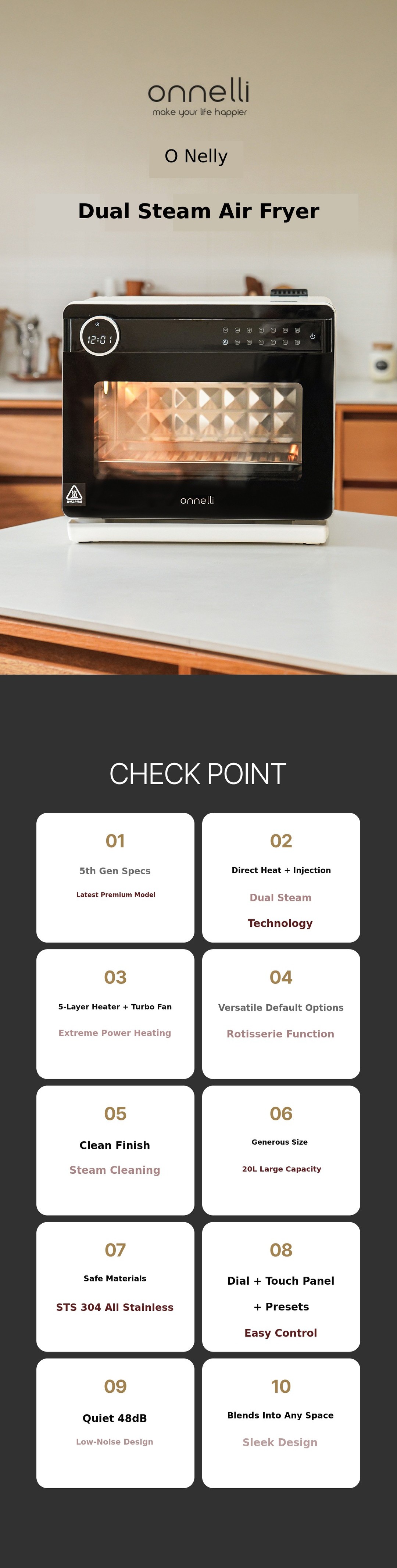 1. ๐ณ Dual Steam Air Fryer - Dual steam and power heating deliver crispy outside, moist inside 2. ๐งผ Steam Auto-Cleaning - Steam cleans interior easily for hygienic use 3. ๐ Exclusive Crowdfunding Discount - 32% off with limited gifts for backers
