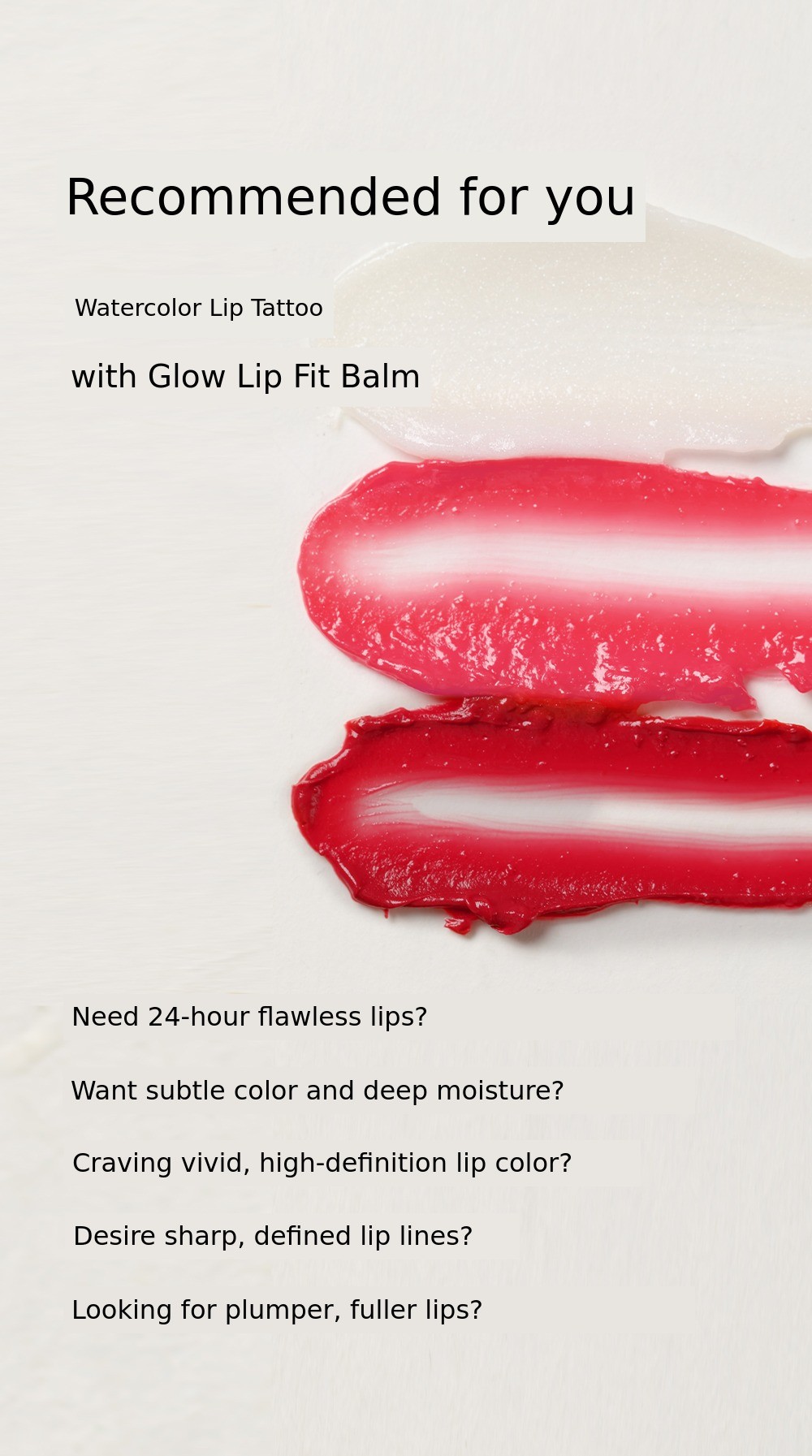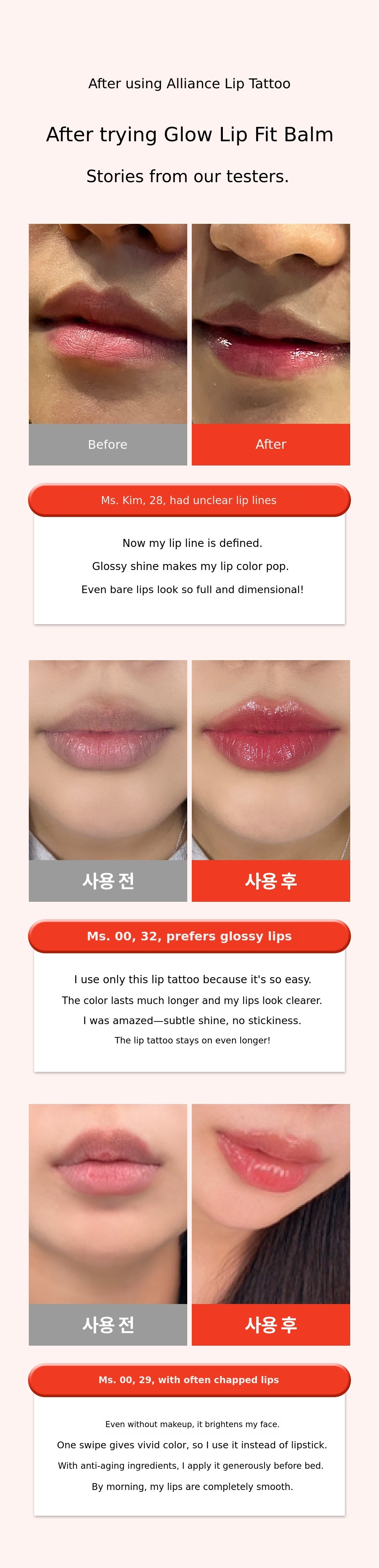 We now plan to go further by continuously launching products that truly solve our customers' real problems and provide greater satisfaction. As we interact with our customers, we are gradually learning and listening to what is truly needed. 'Lip Fit Balm' helps maintain the color and pigmentation of lip tattoos more perfectly and for a longer time. It also boasts excellent moisturizing and glow properties, so we believe you will be even more satisfied.