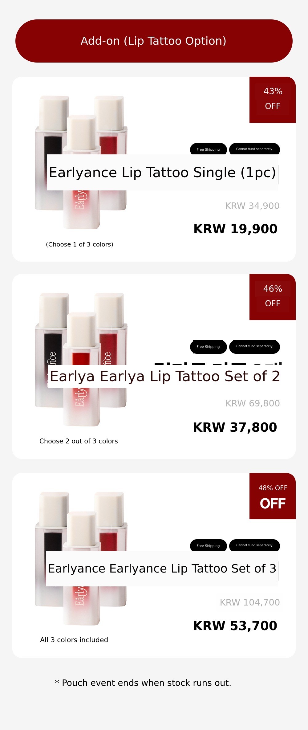 In fact, we worked hard to create a lip balm with department store quality, from the formula to the ingredients, without missing a thing. We drastically reduced the profit margin and set a reasonable price in the 10,000 won range. This is because we hope you will use the lip tattoo even better.