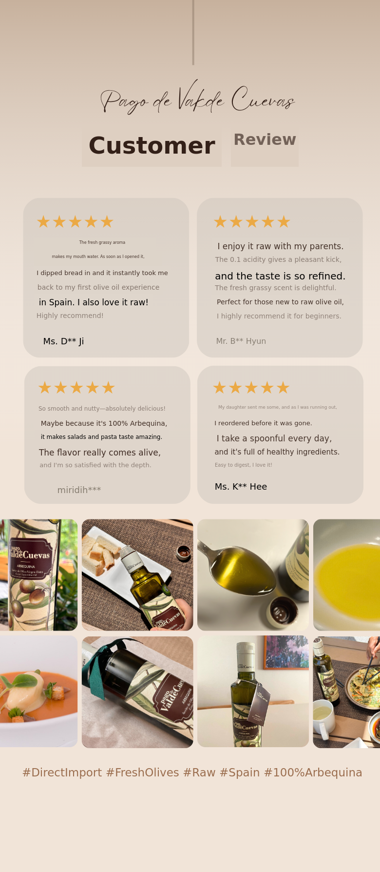 1. 🫒 100% Arbequina Fresh Olive Oil - Premium extra virgin olive oil made from Spain's elite Arbequina variety 2. 🌿 Fresh and Edible Premium Oil - Low acidity below 0.1, ideal for raw consumption with rich nutrition and smooth taste 3. 🎁 Limited Import with Special Packaging - Includes certified authentic box and tag, first official import in Korea