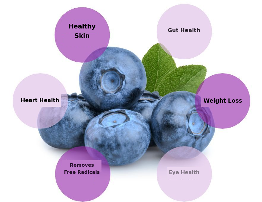 Many benefits such as maintaining healthy skin, weight loss, heart health, and gut health. Enjoy not only the taste but also the health benefits with these visually appealing blueberries.