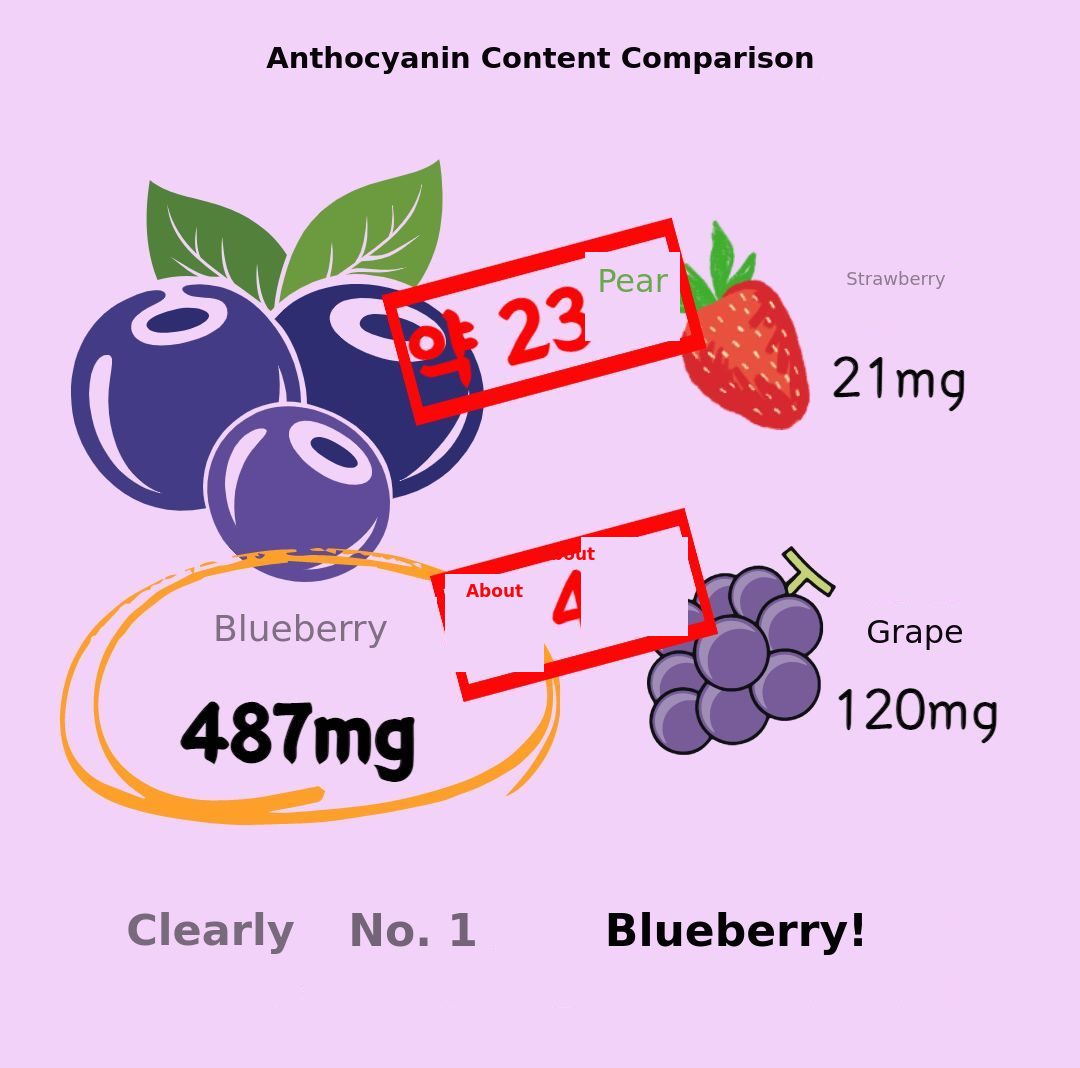 Excellent for eye health,Blueberries contain as much as 23 times more anthocyanin than strawberries and 4 times more than grapes. Did you know that?