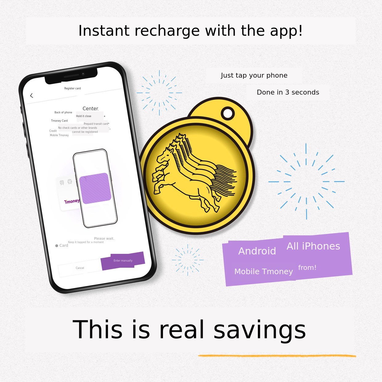 Inside the Mapae transportation card,Tmoney transportation card is embedded.