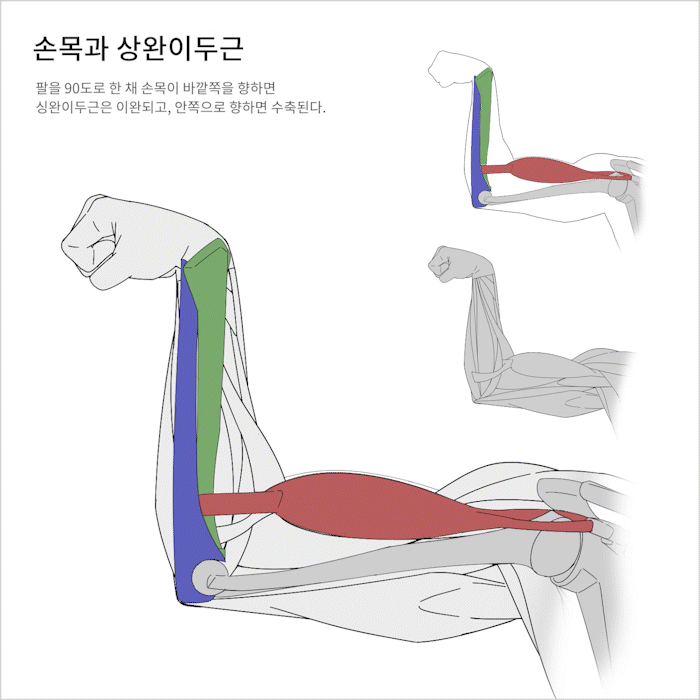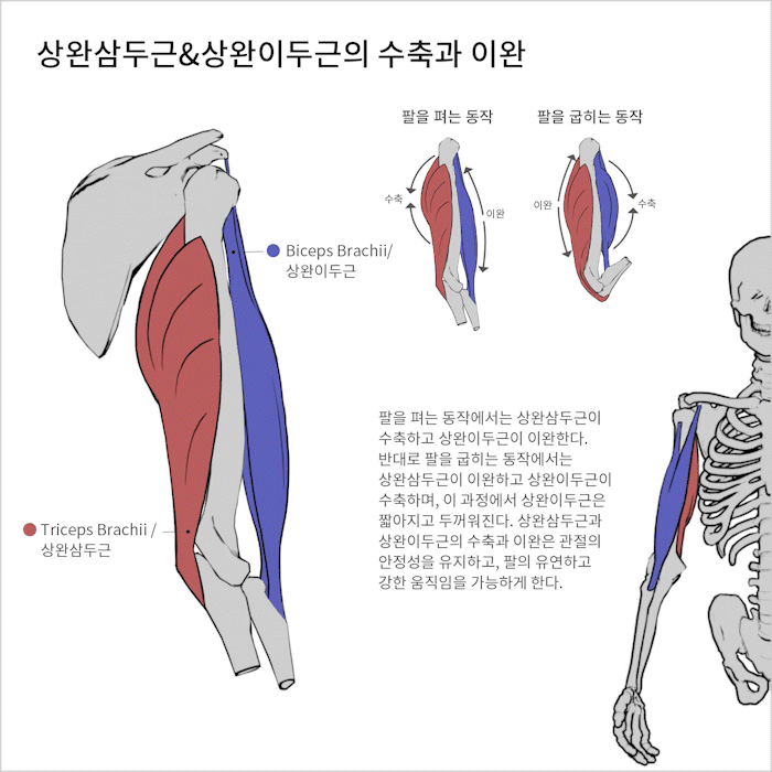 During specific actions,The process of muscles contracting or relaxing is shown step by step.