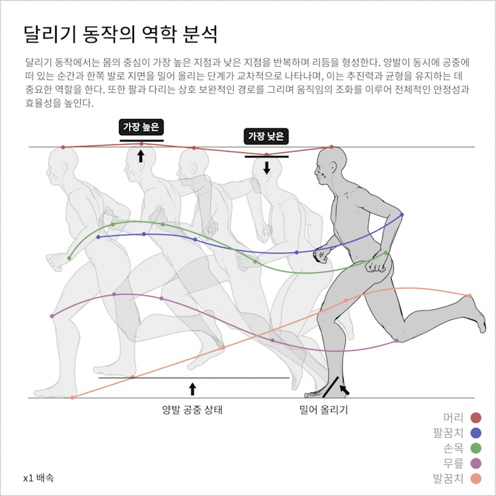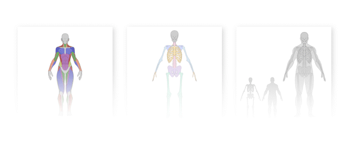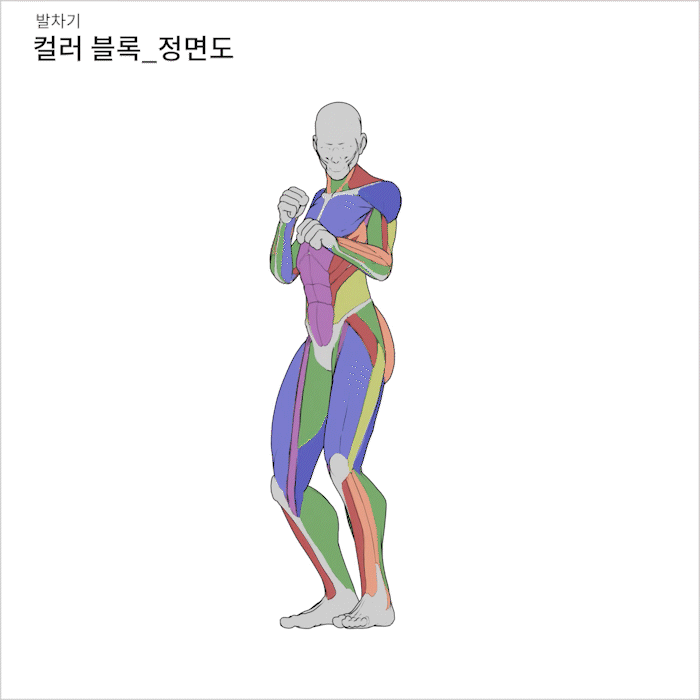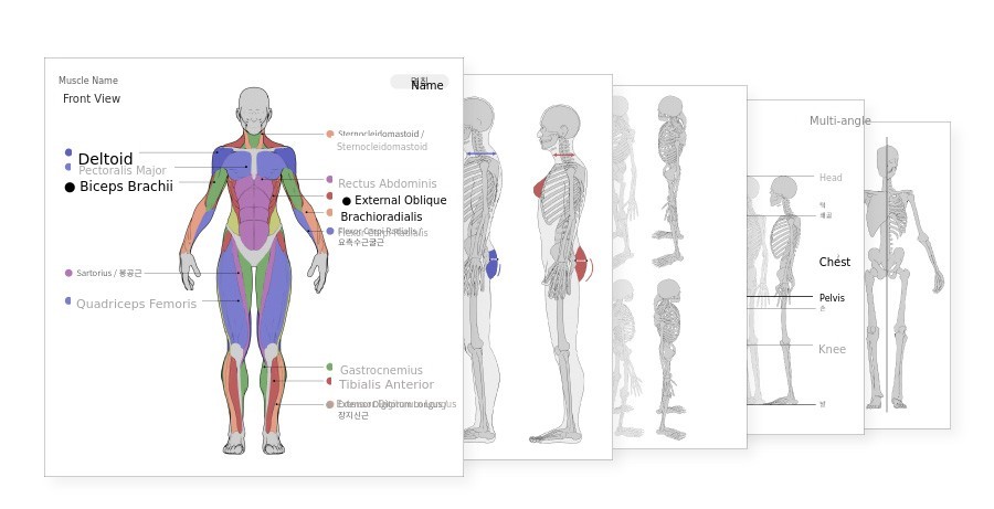 You can interpret various movements from multiple perspectives and intuitively understand the structure and motion using color blocks and anatomical information.