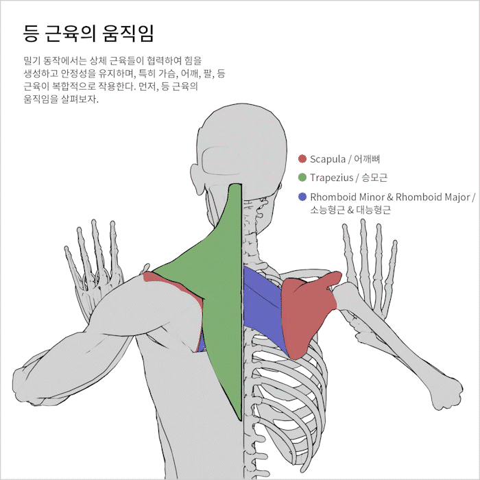 'Pushing motion,' 'walking motion,' 'punch,' etc.Anatomical structures working within movement are explained.