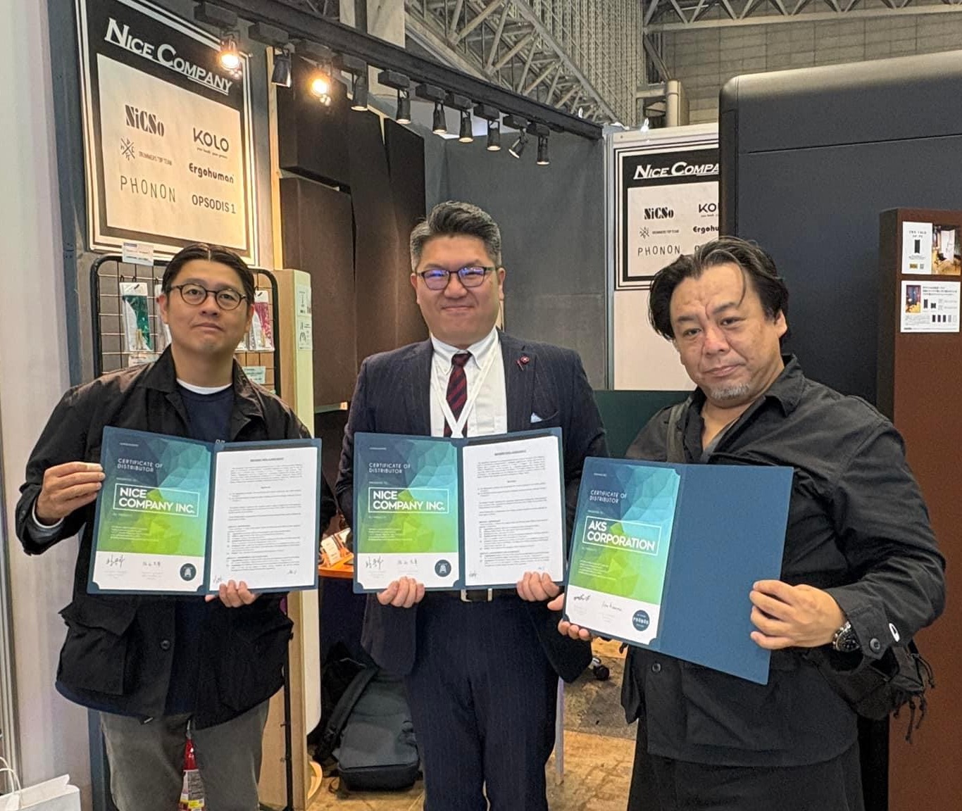(Left) President Sayama Motoaki of Nice Company, the world distributor of PHONON
