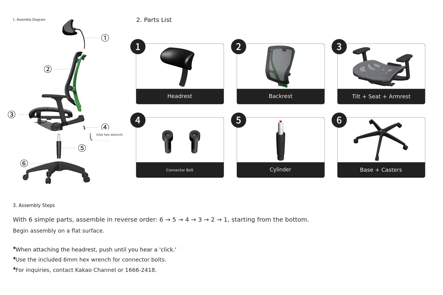 Warranty coverage: Excludes natural fraying or loosening of the mesh, arm pads, casters, cylinders, and other consumable exterior parts that occur during use, except for the tilt mechanism.