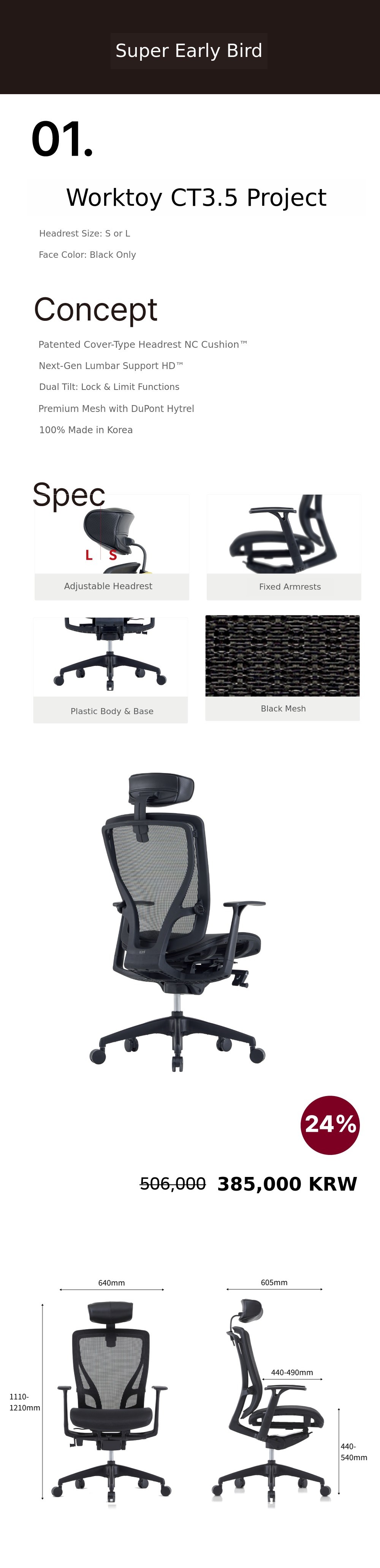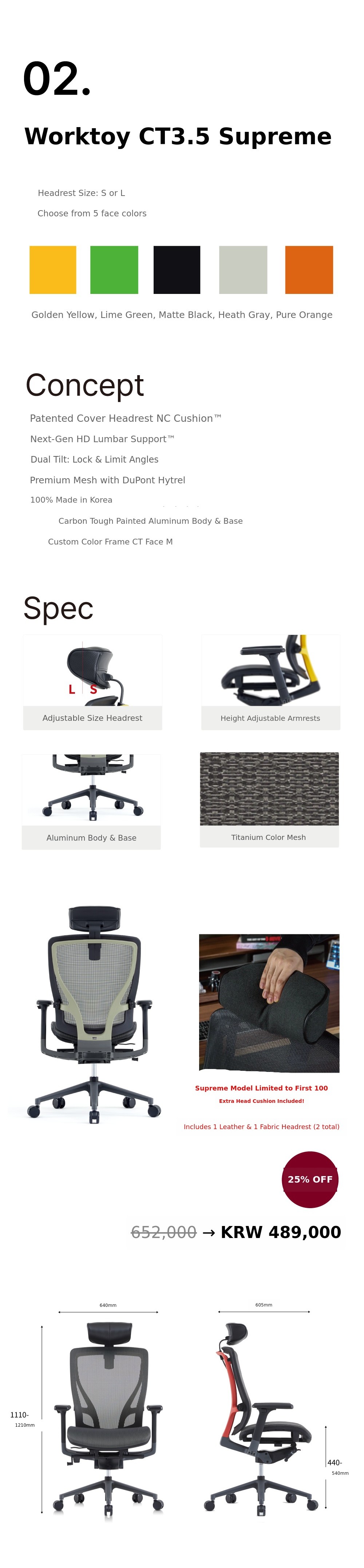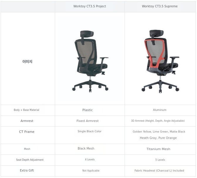 A. The Worktoy CT3.5 is an idea convergence model newly planned with over 10 years of accumulated chair development know-how, and is a representative high-end chair 100% made in Korea, completed after three upgrades.