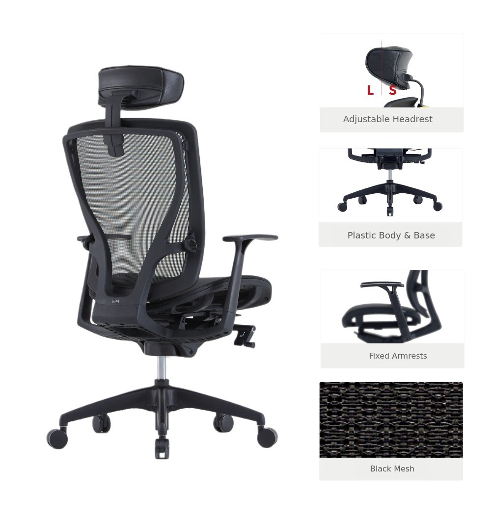 Fixed armrests, black CT frame, black mesh with A chic design that fits perfectly in minimal spaces,