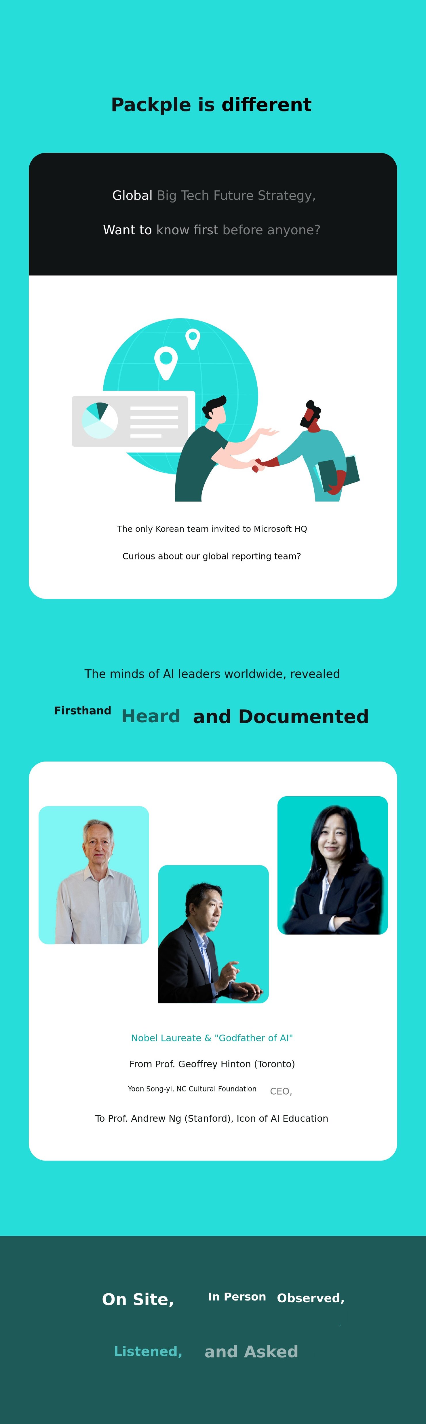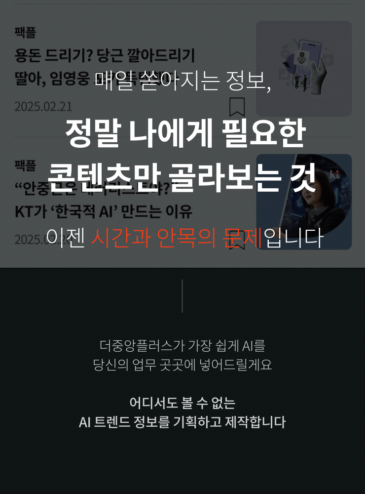 Hello. We are Packple from the IT Industry Department of JoongAng Ilbo, delivering the trends of the generative AI era faster than anyone else. Packple explains the hottest technologies, businesses, and IT companies in an easy way from the perspectives of users, providers, and investors, so you don't miss out on important stories. It serves as a 'Future Verification Report' that examines the strategies of innovative companies at home and abroad and their impact on our lives, as well as an 'Insight Report' that lets you peek into the minds of innovators. It is also a 'Personal Coach' that helps you adapt to technological changes affecting your life right now. Through our newsletter and The JoongAng Plus Packple Original Series, we are planning content that can drive real change based on on-site voices and in-depth insights.