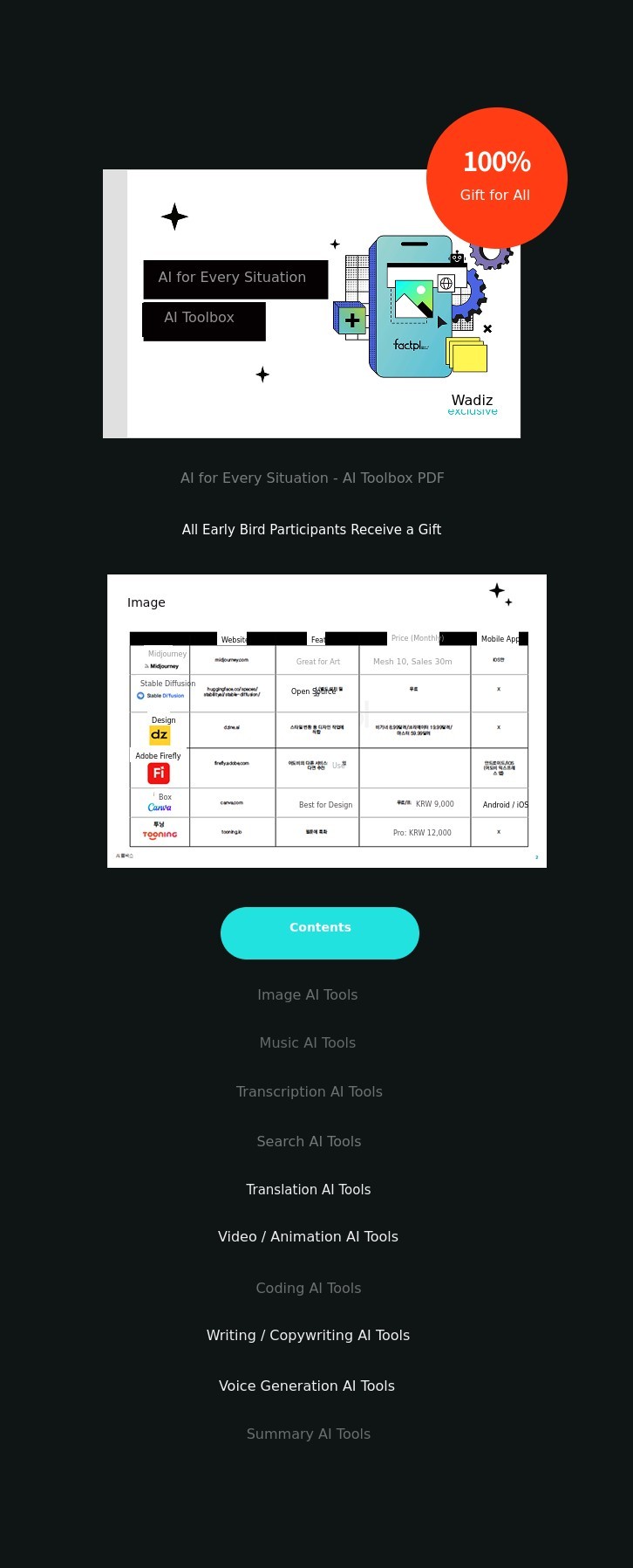 → Receive the 'Generative AI Tool Table PDF' worth 10,000 KRW for free (when funding within 72 hours) - Up to 62% off to strengthen your practical skills!