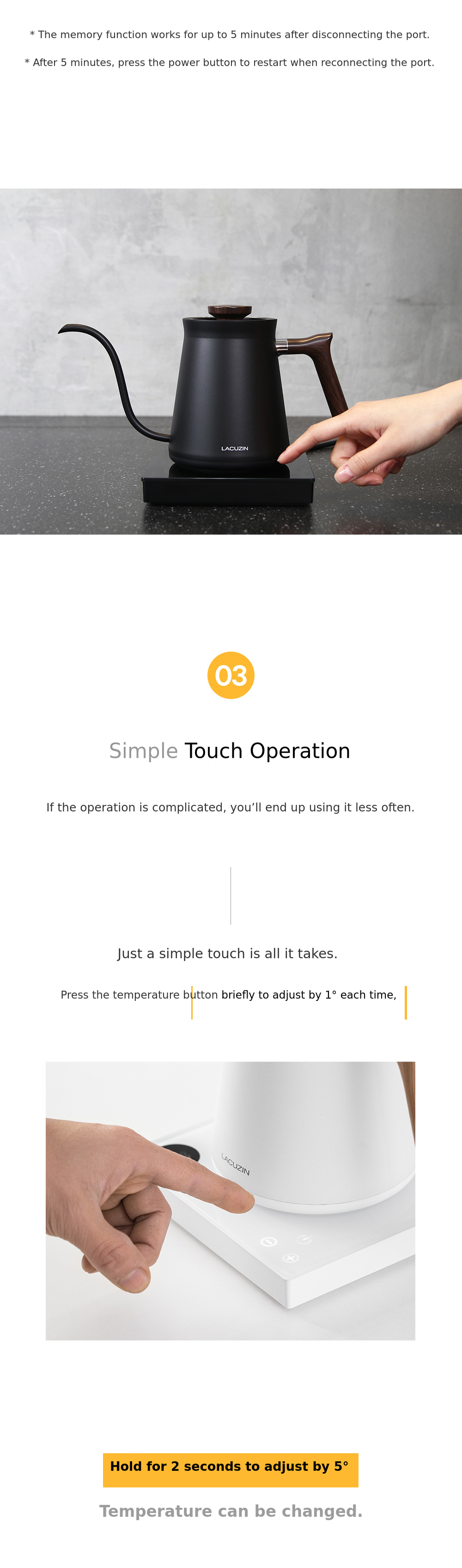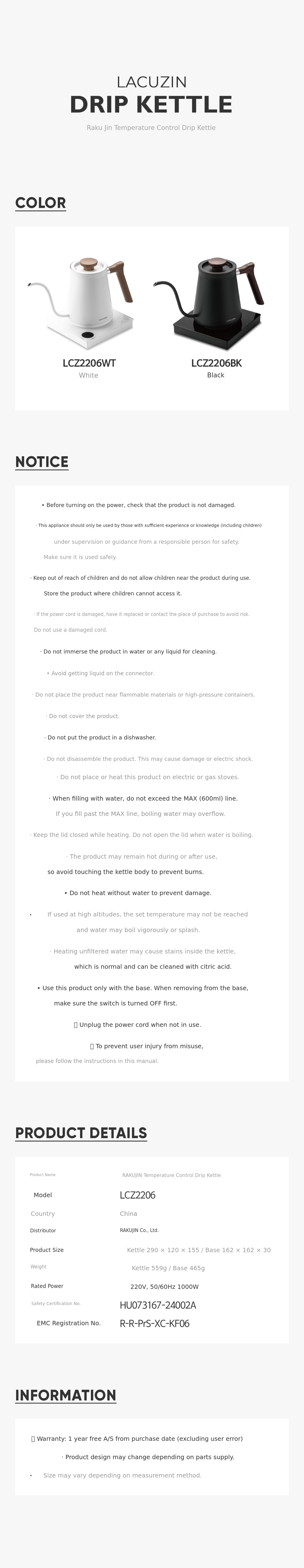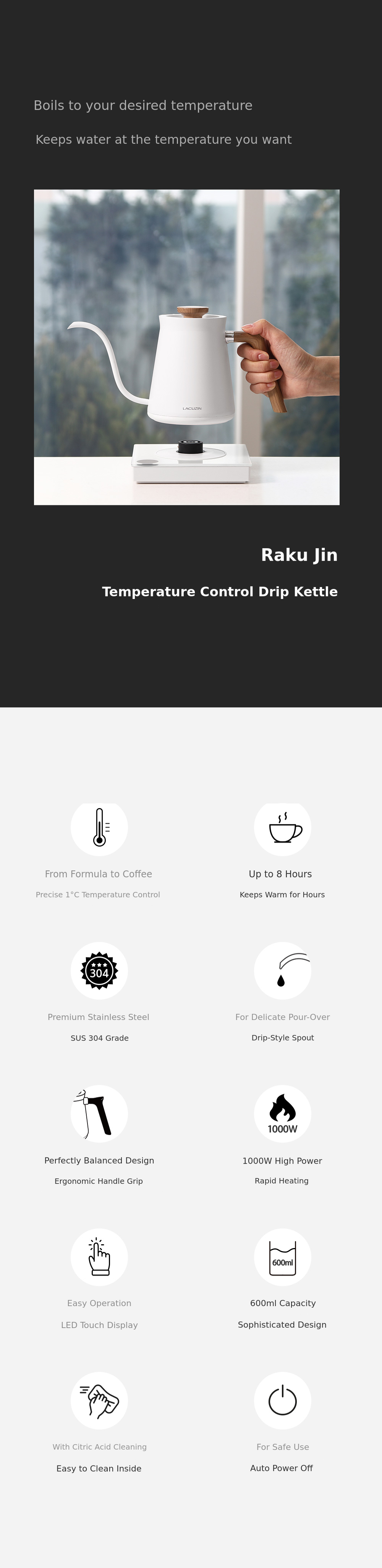 Starting with kitchen appliances, Lacuzine has continuously developed and launched essential home and seasonal appliances. This temperature control thermal drip electric kettle was developed as an extension of that effort, and we believe it is a highly perfected product. We highly recommend this reward to our supporters for a better, more perfect, and stable home environment.