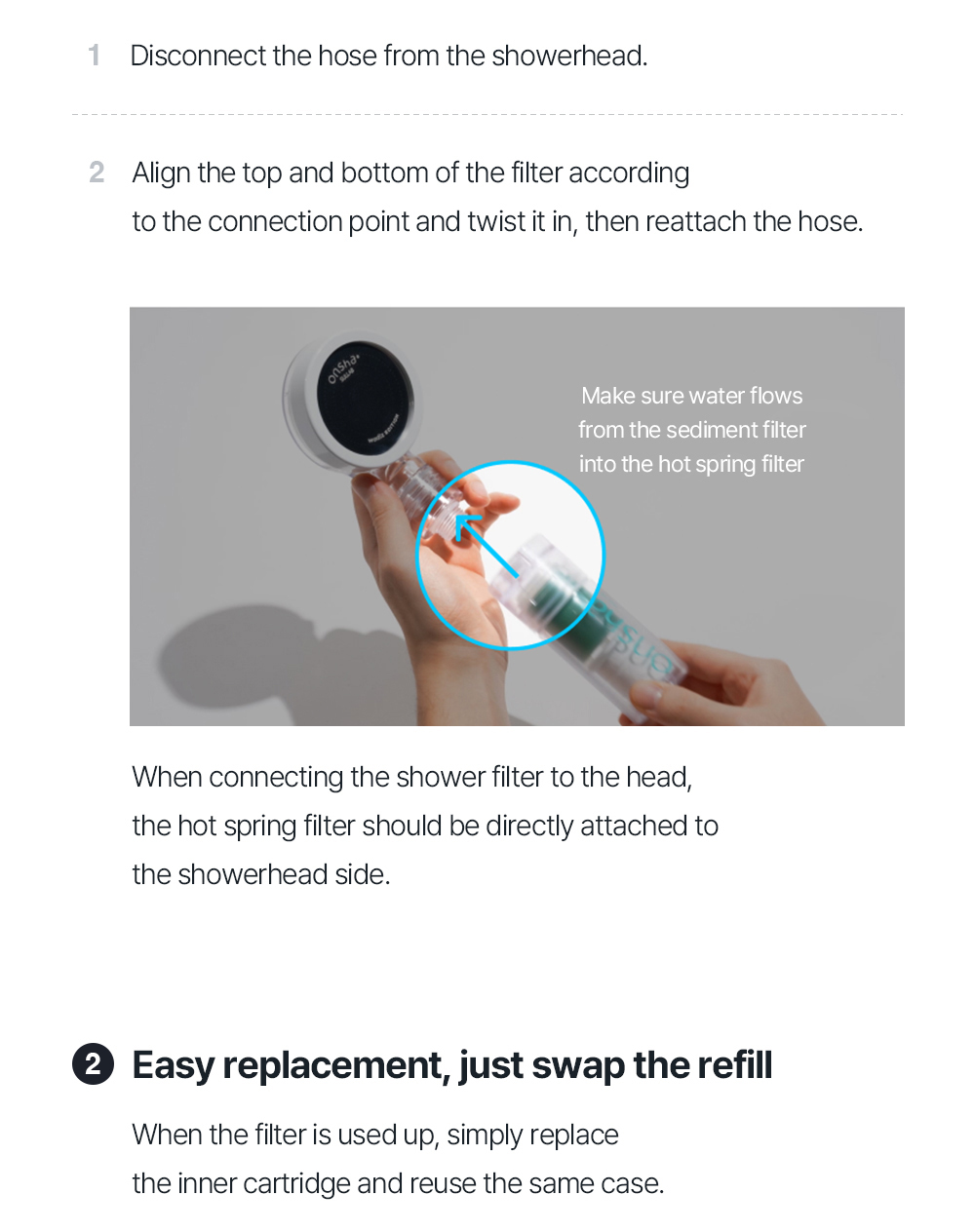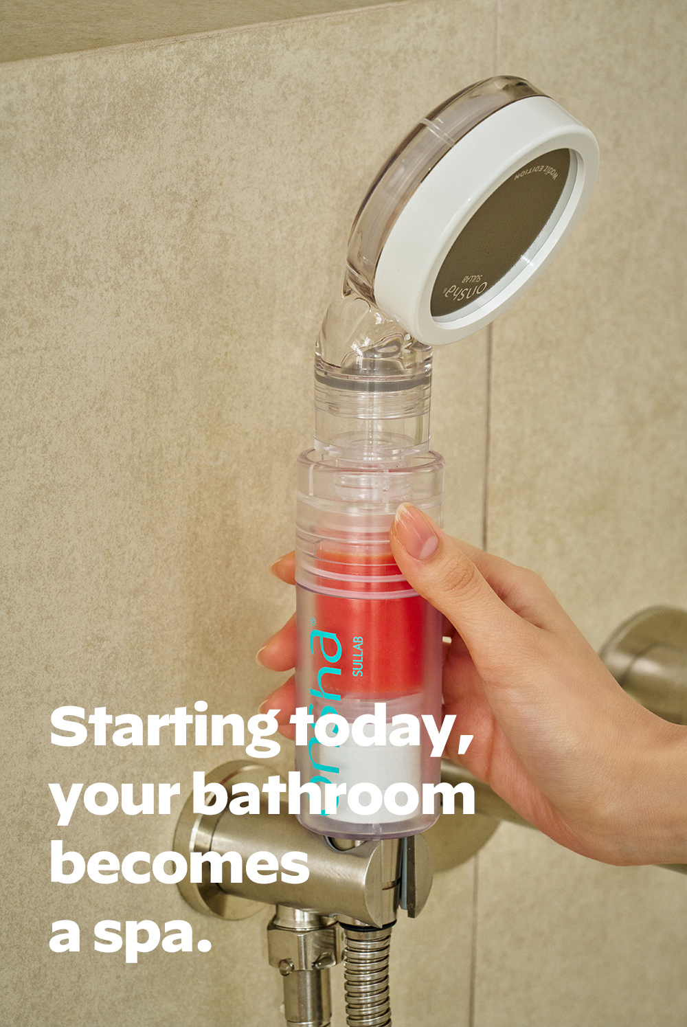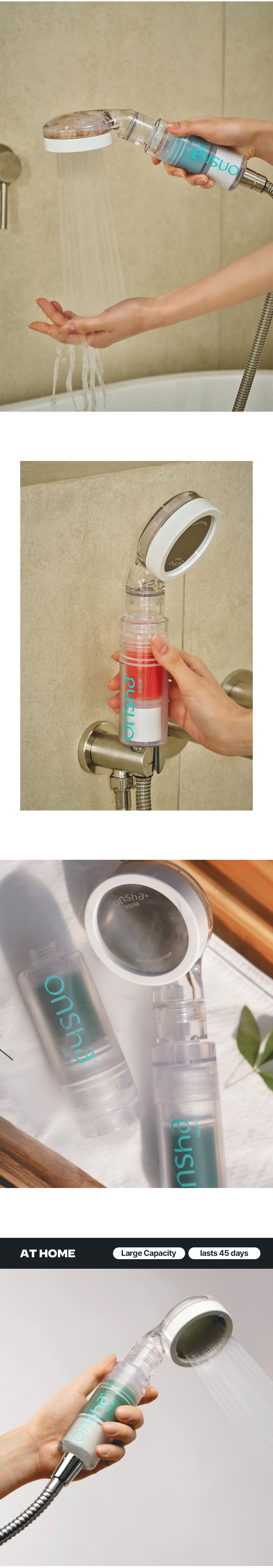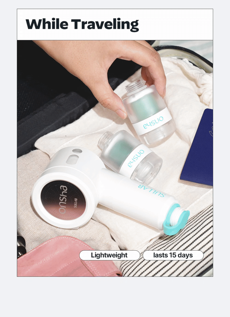 Feels like soaking in a hot spring for an hour. The Onsha hot spring shower filter captures the full essence of Korean hot spring ingredients.
