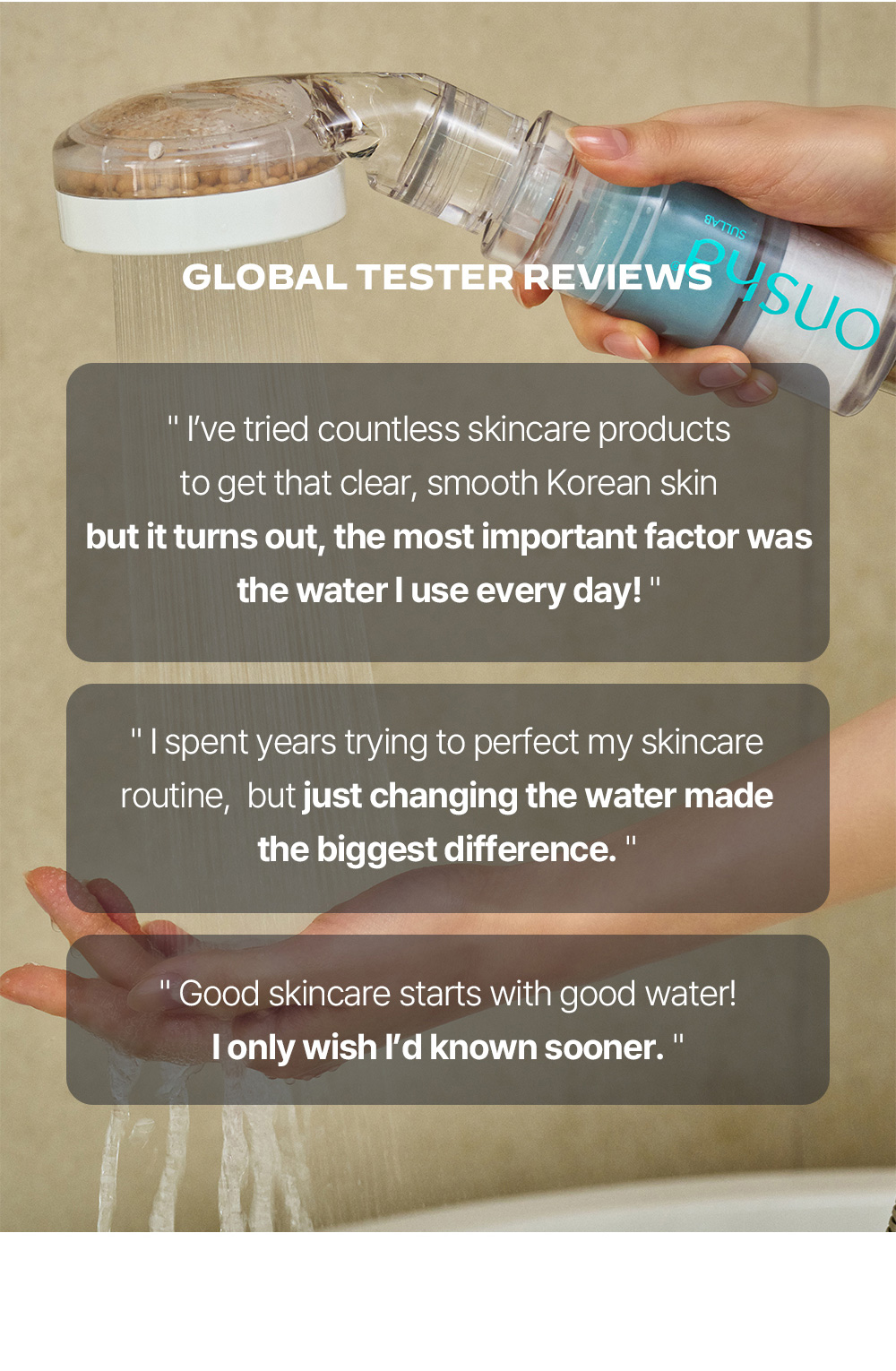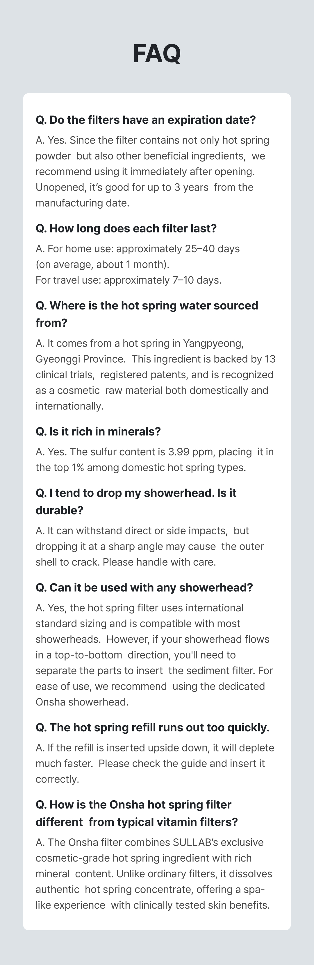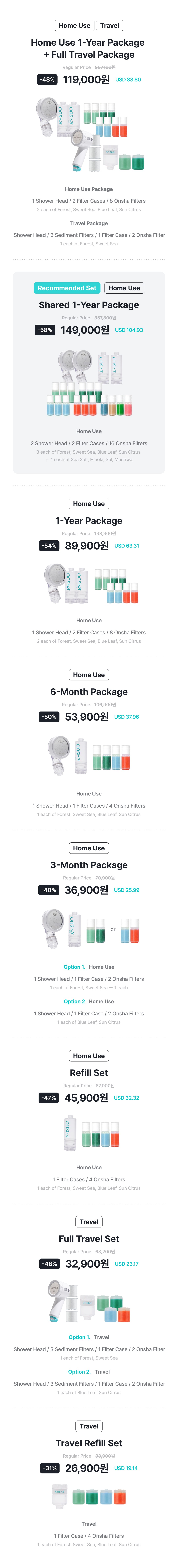 Feels like soaking in a hot spring for an hour. The Onsha hot spring shower filter captures the full essence of Korean hot spring ingredients.