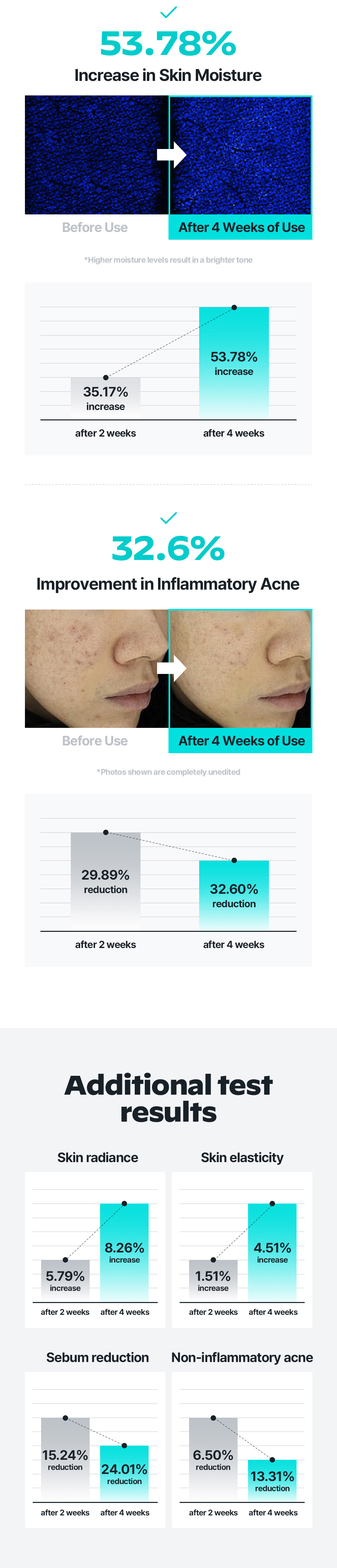 From hydration / glow / firmness to acne care clinically proven effects across 6 categories.