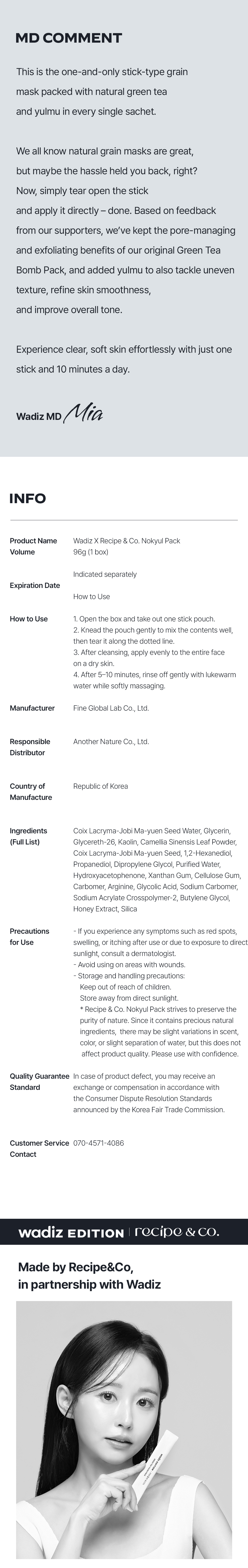Unlike mud-only masks that can be drying, or masks with harsh particles that can irritate the skin, we incorporated moisture-rich honey for a creamy texture that feels like applying a hydrating cream. Our focus was on enabling everyone to achieve 'flawless skin' through generous amounts of skin-loving green tea and yulmu. We hope it becomes a habit leading to 'real skin transformation. To make convenient home-aesthetic care accessible anytime, anywhere, we packed everything into this single sachet.