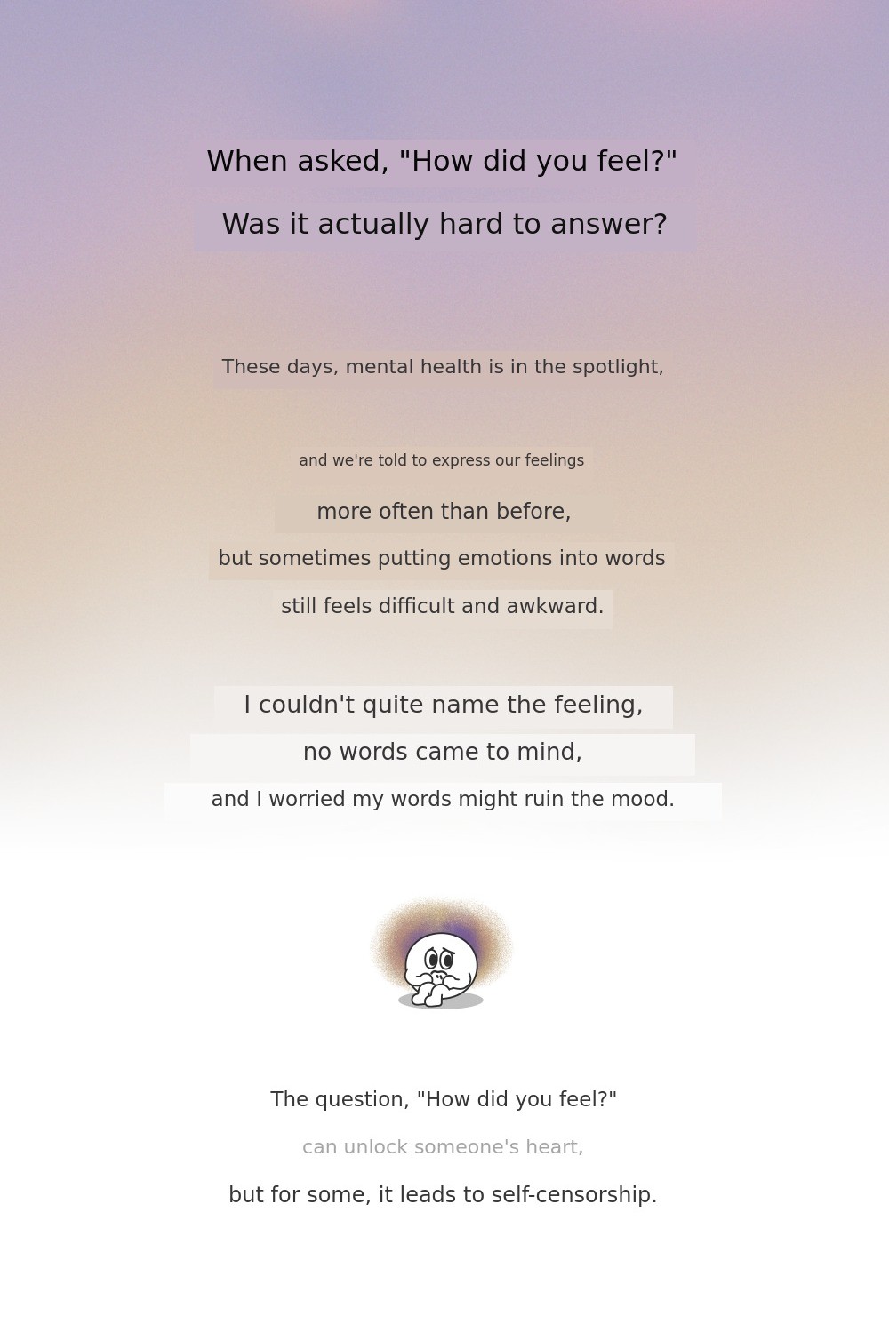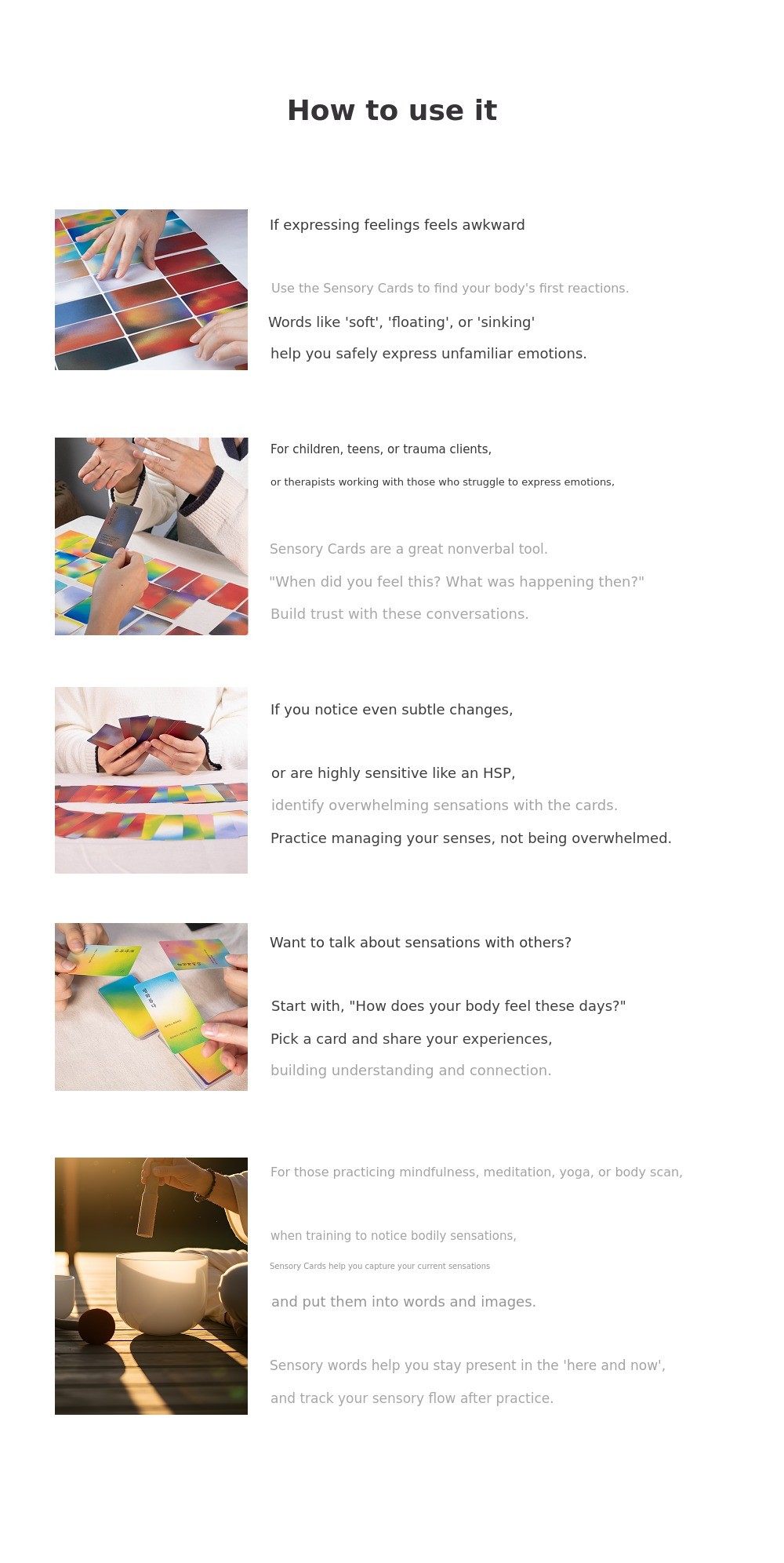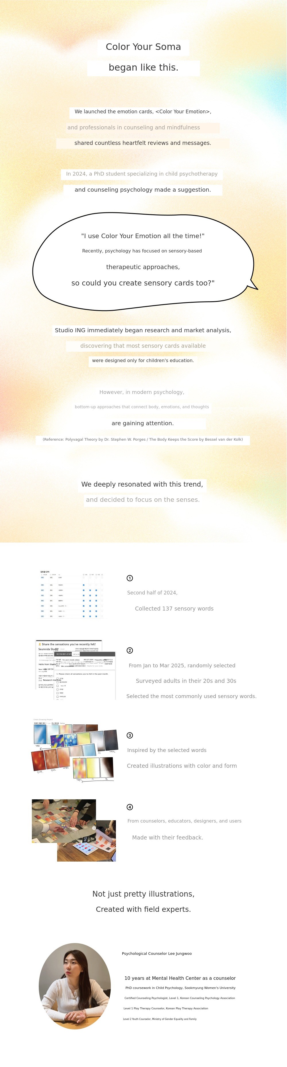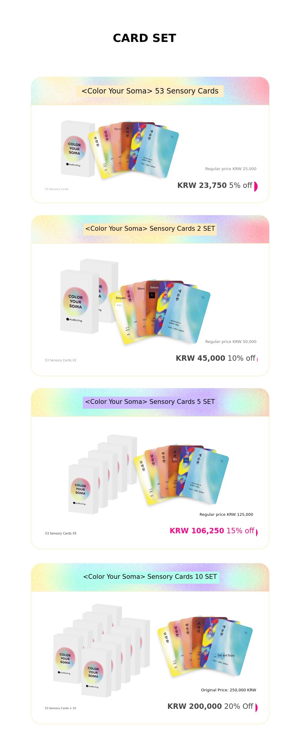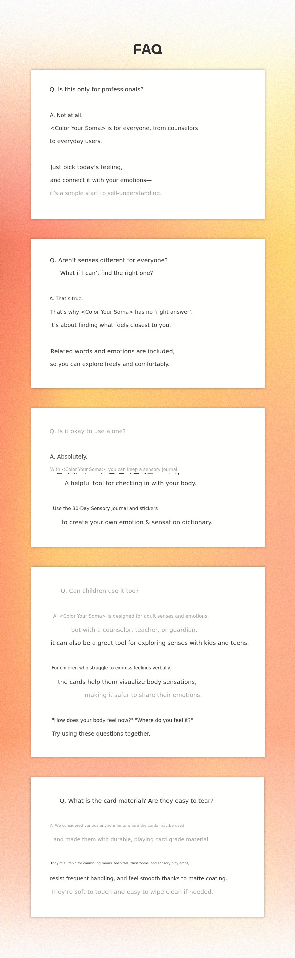 1. π΄ Adult Sensory Card Set - Visualizes senses and emotions to aid self-understanding and expression 2. π§ Supports Emotional Recognition - Enables communication through senses for those struggling with verbal expression 3. π Backer Benefits - All participants receive SOMA character card set upon 1000% funding