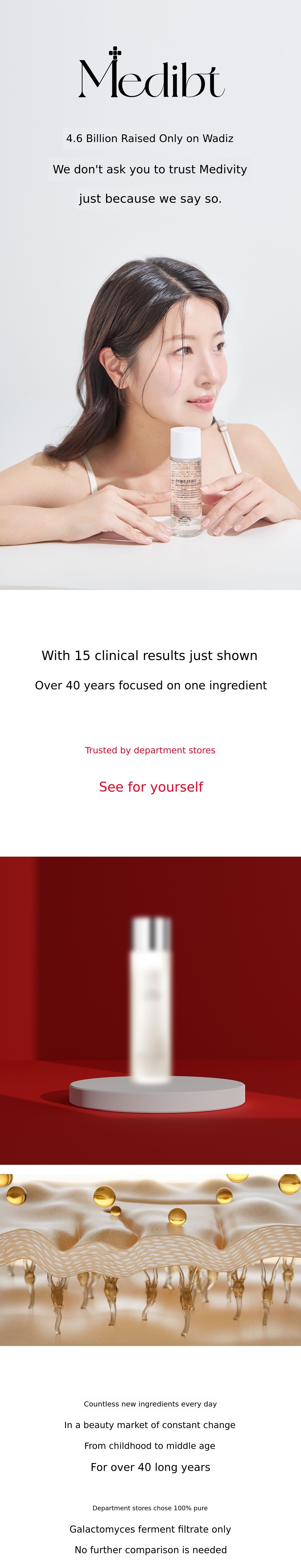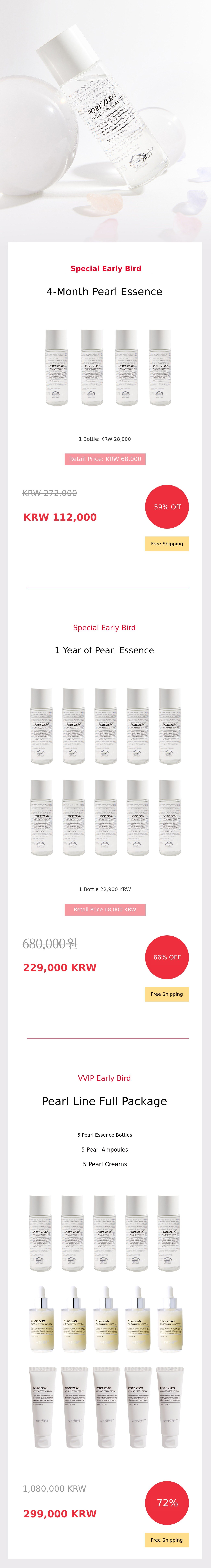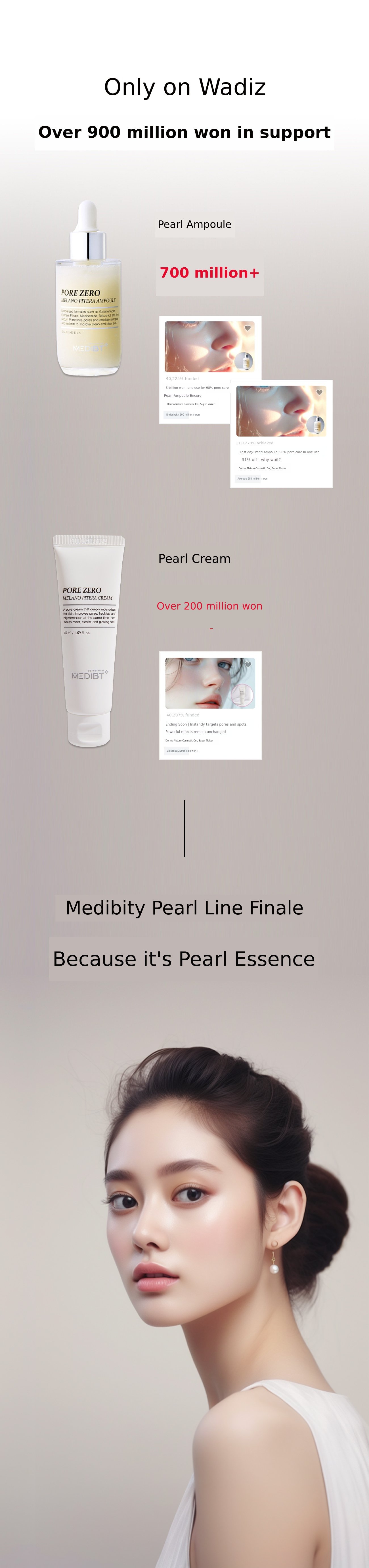 This Pearl Essence as wellEven knowing that the same essence is sold at department stores for around 200,000 won per bottle, we set the price at 22,900 won.Change of mind refunds are possible within 7 days of receipt, and just in caseif there is a defect, returns are possible within 30 days. We have set our policies as much as possible to be on the supporters' side.Mediviti's Pearl Line was able to begin and end thanks to Wadiz supporters.