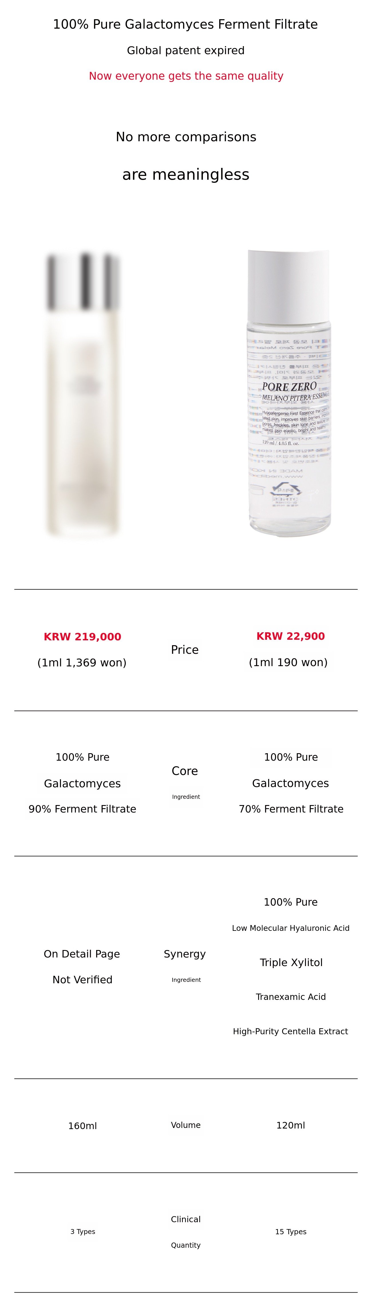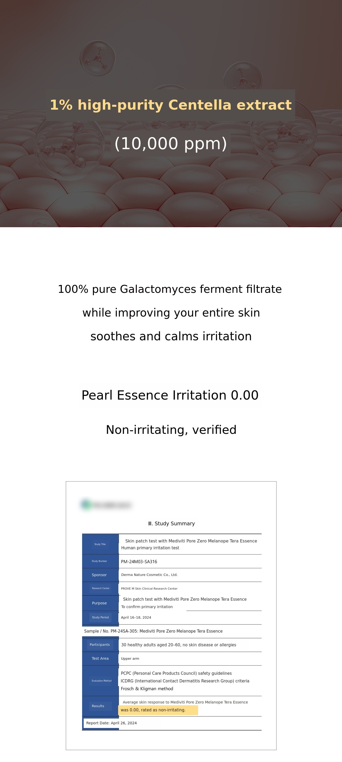 When conducting human application tests, the product used isexactly the same as the one sent to supporters. Because it must be carried out this way,(If we lie about this, we go to jail for breaking the law!) Just as with luxury department store essences, the pearl essence you will receive contains70% Galactomyces Ferment Filtrate with not a single drop of water mixed in. will be included.